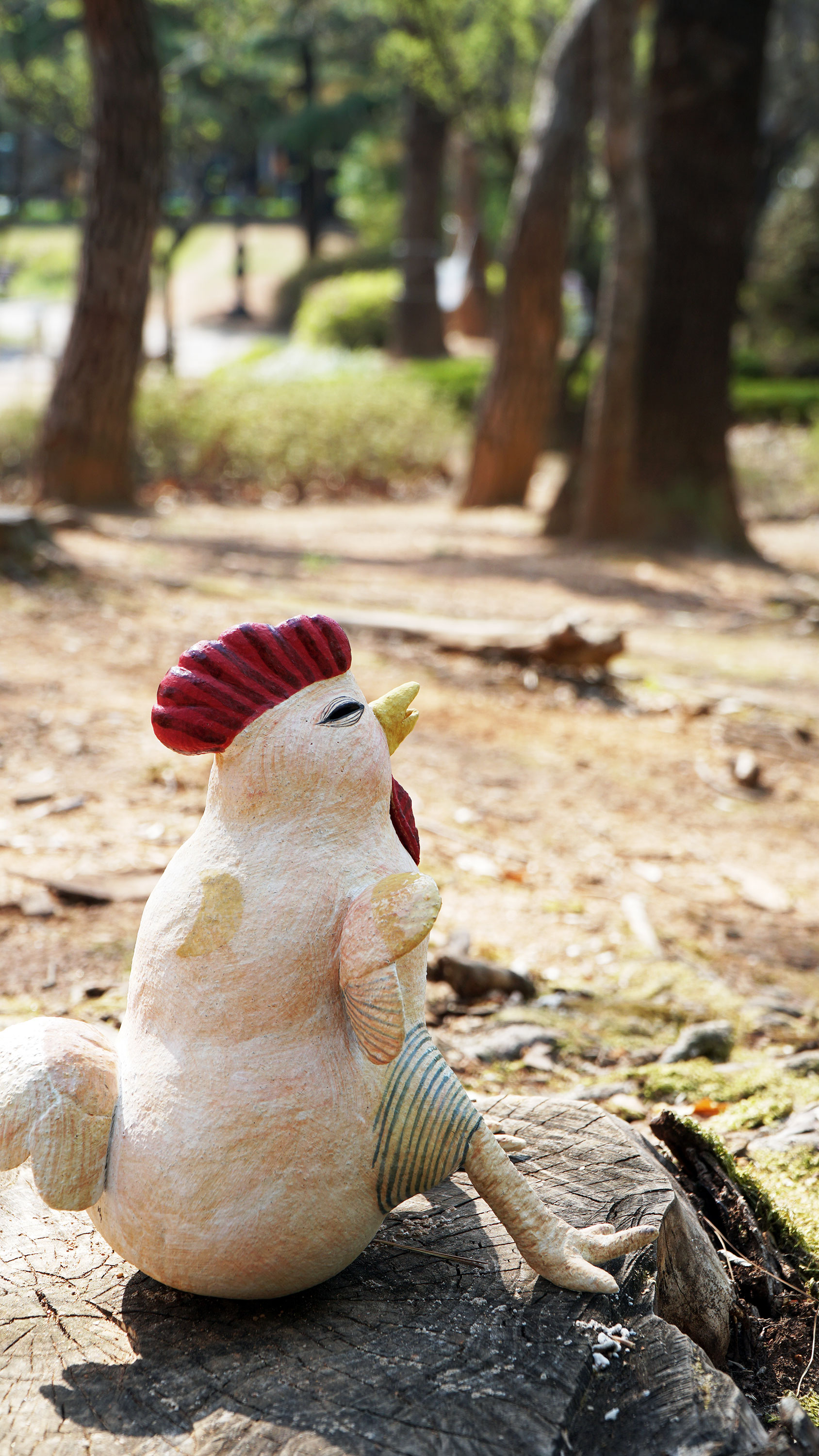 TRADITIONALLY, IN KOREA, A PAINTING OR DOLL OF CHICKENS HAVE BEEN GIVEN AS A GIFT WISHING FOR SOCIAL SUCCESS AND A CHARM PREVENTING UNFORTUNATE EVENTS. The red cokscomb represents success and claws mean courage. The Chicken came back to us with a sophisticated and humorous appearance to be with us and share a joy. Now, we call it Naldak. Welcome Naldak!