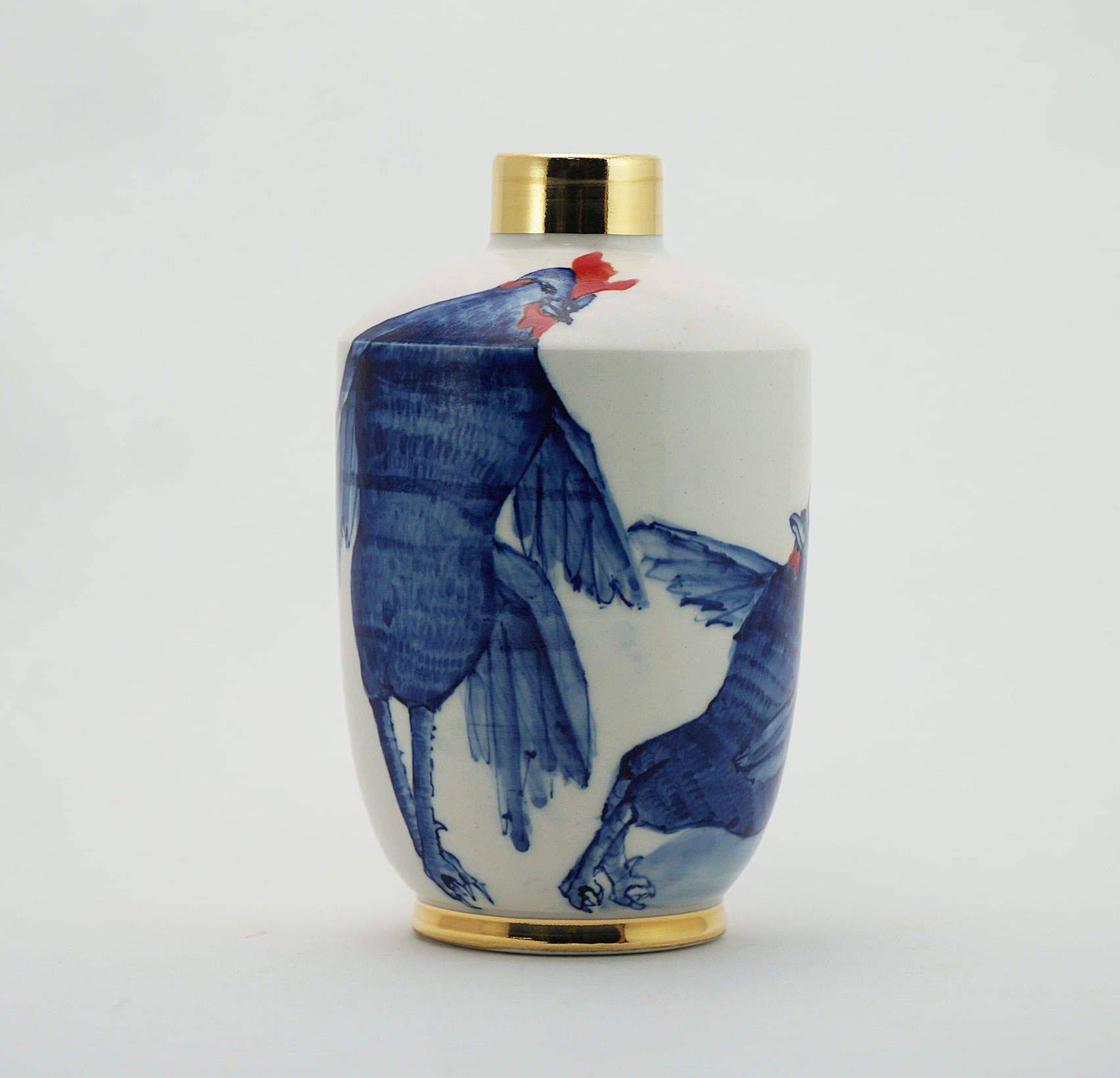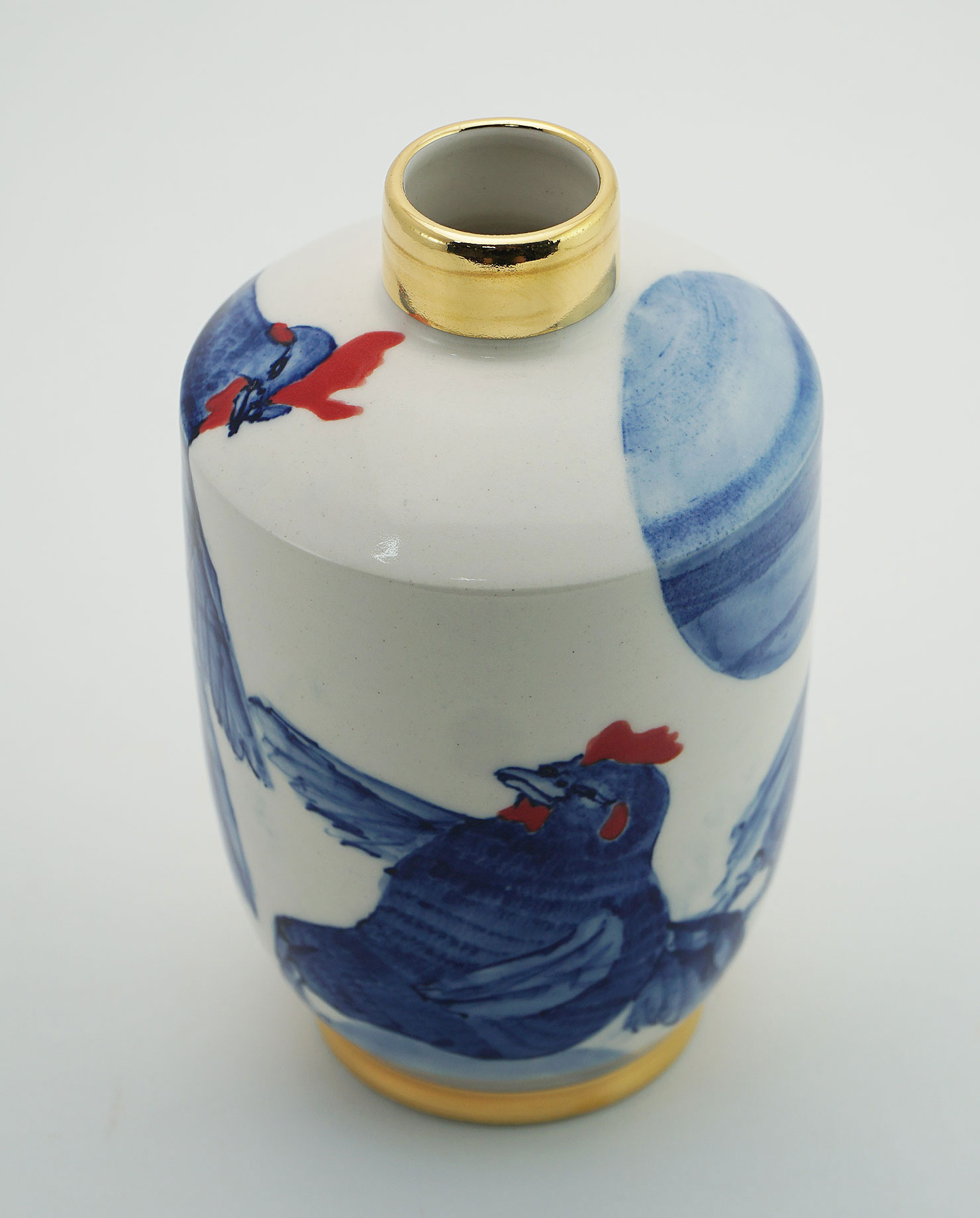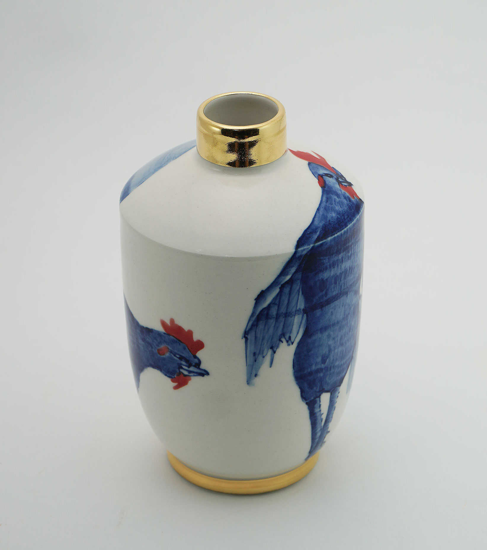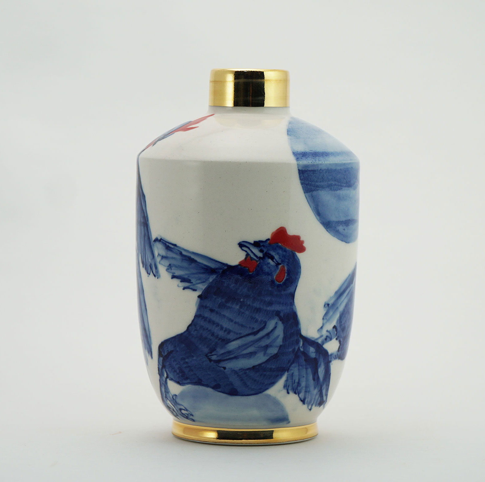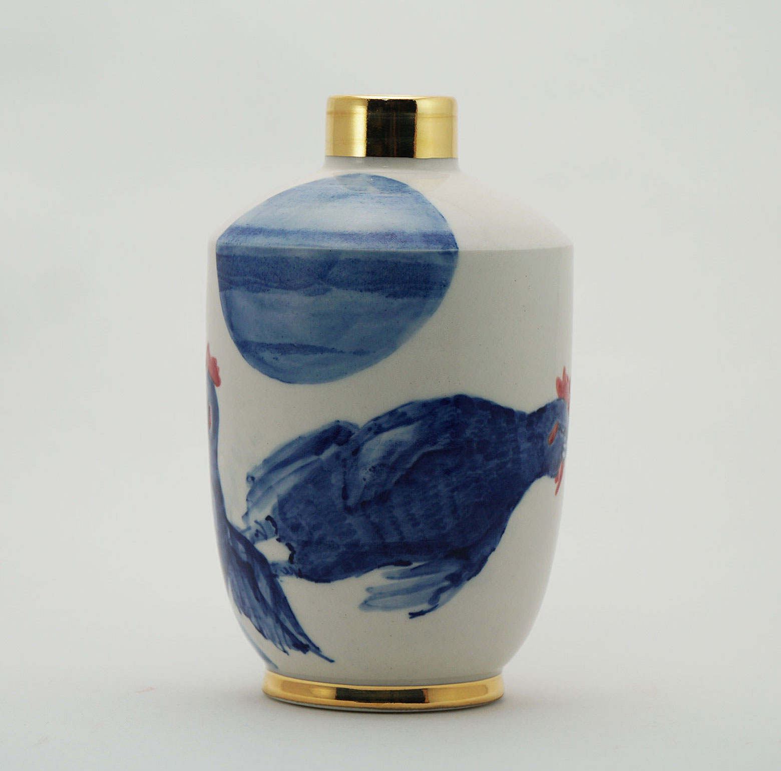 The Moon and Chickens vases are living objects where you can enjoy humorous expressions and playful movements of the chickens. The vases are hand painted and come in a variety of sizes and forms, allowing you to place one or more of them together to make your space even more unique.