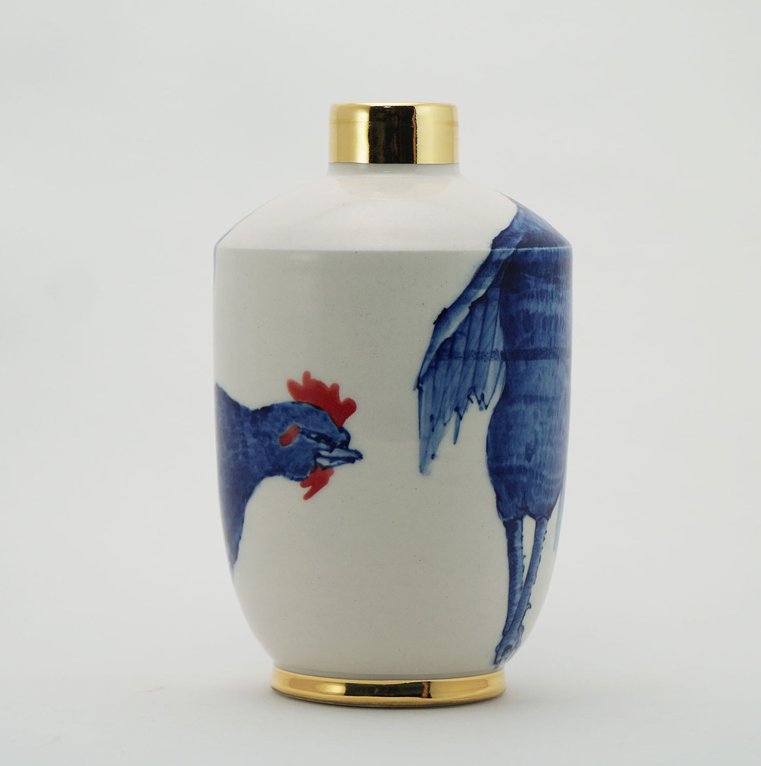 The Moon and Chickens vases are living objects where you can enjoy humorous expressions and playful movements of the chickens. The vases are hand painted and come in a variety of sizes and forms, allowing you to place one or more of them together to make your space even more unique.