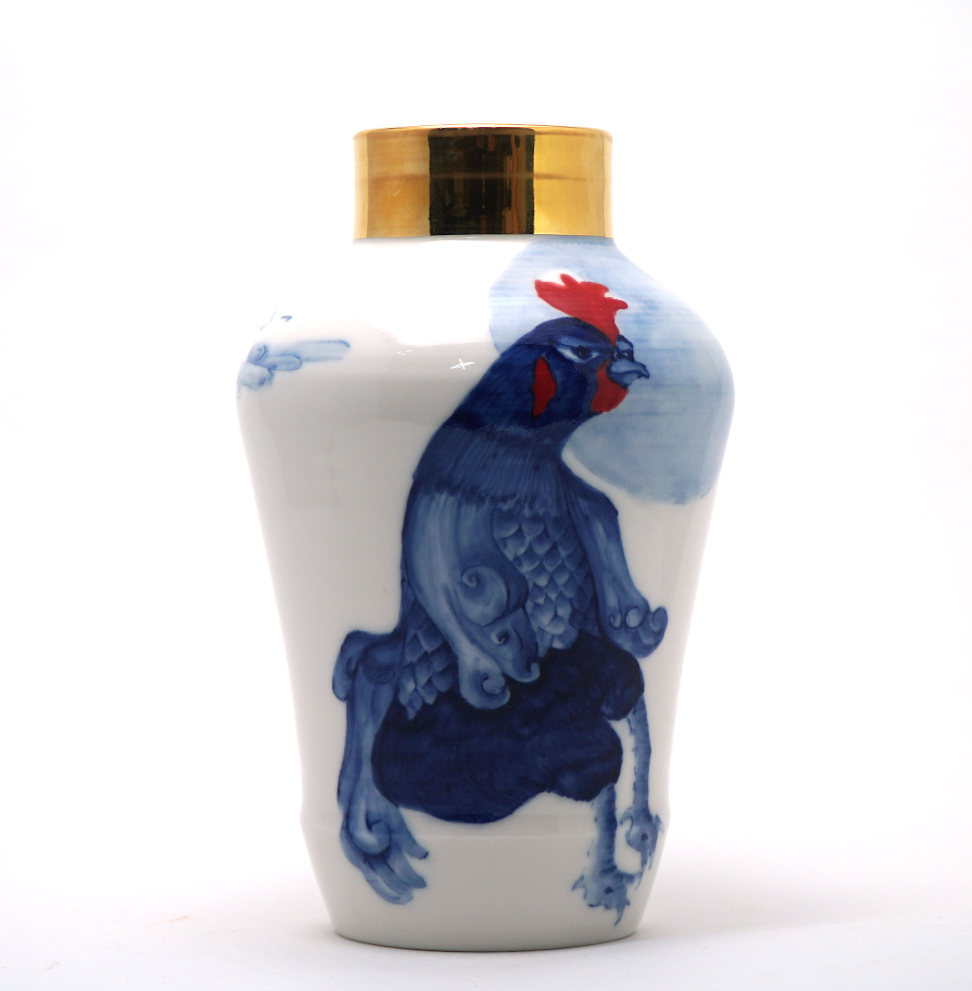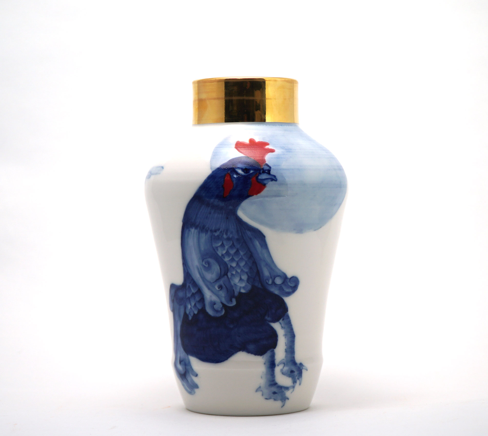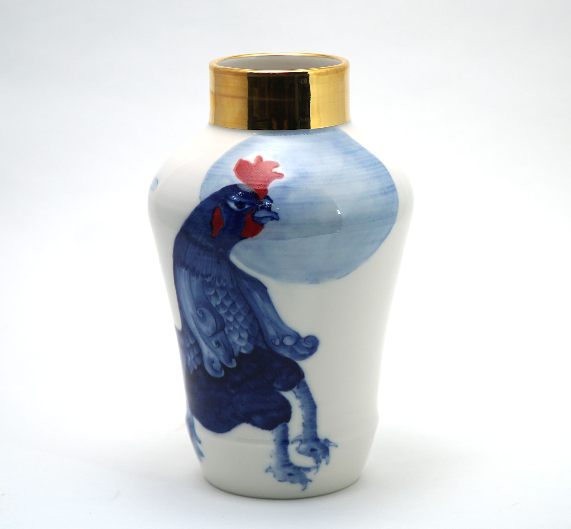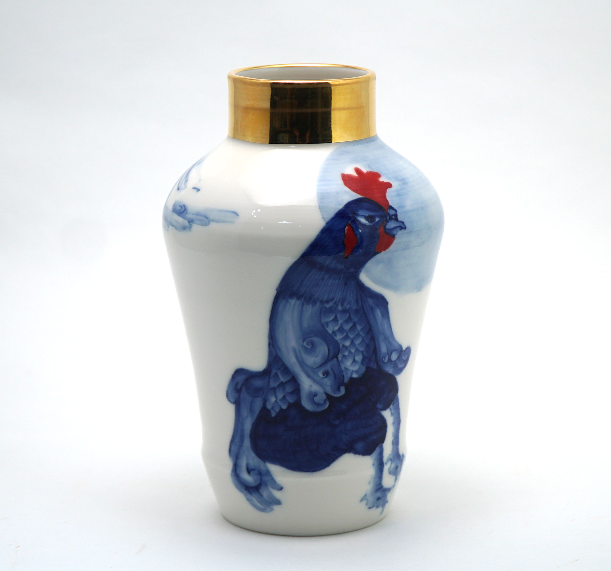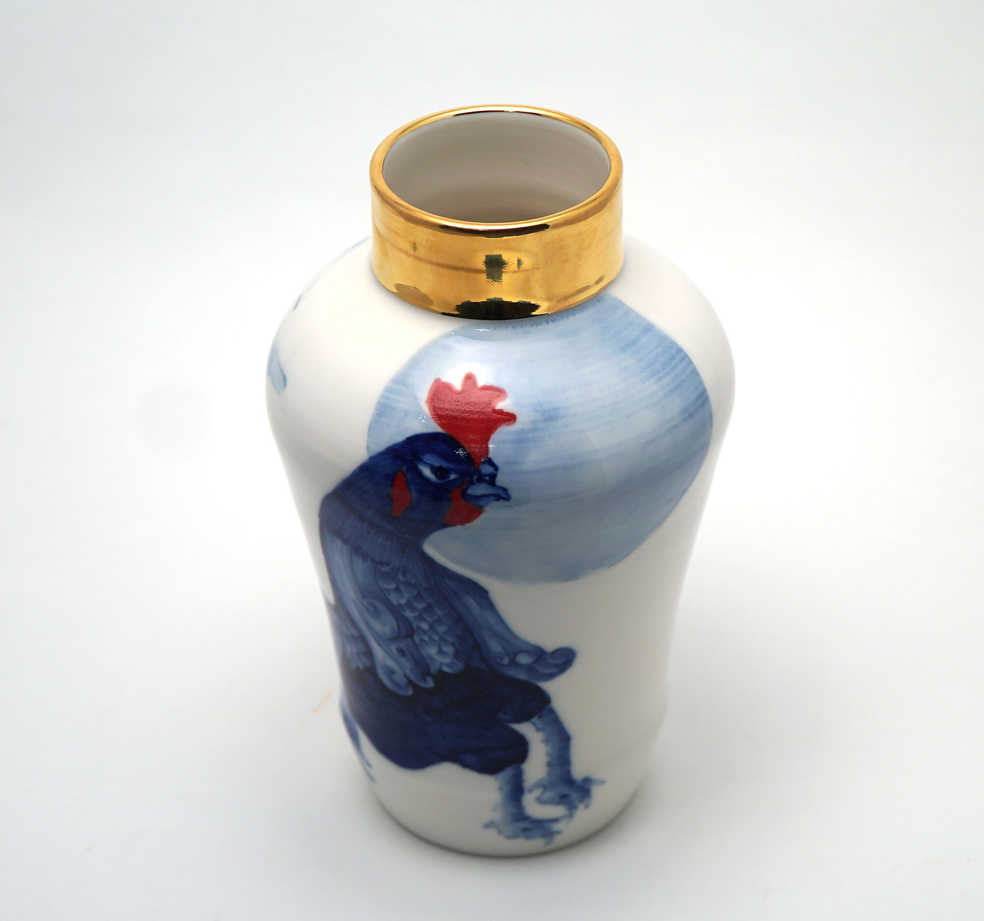 The Moon and Chickens vases are living objects where you can enjoy humorous expressions and playful movements of the chickens. The vases are hand painted and come in a variety of sizes and forms, allowing you to place one or more of them together to make your space even more unique.