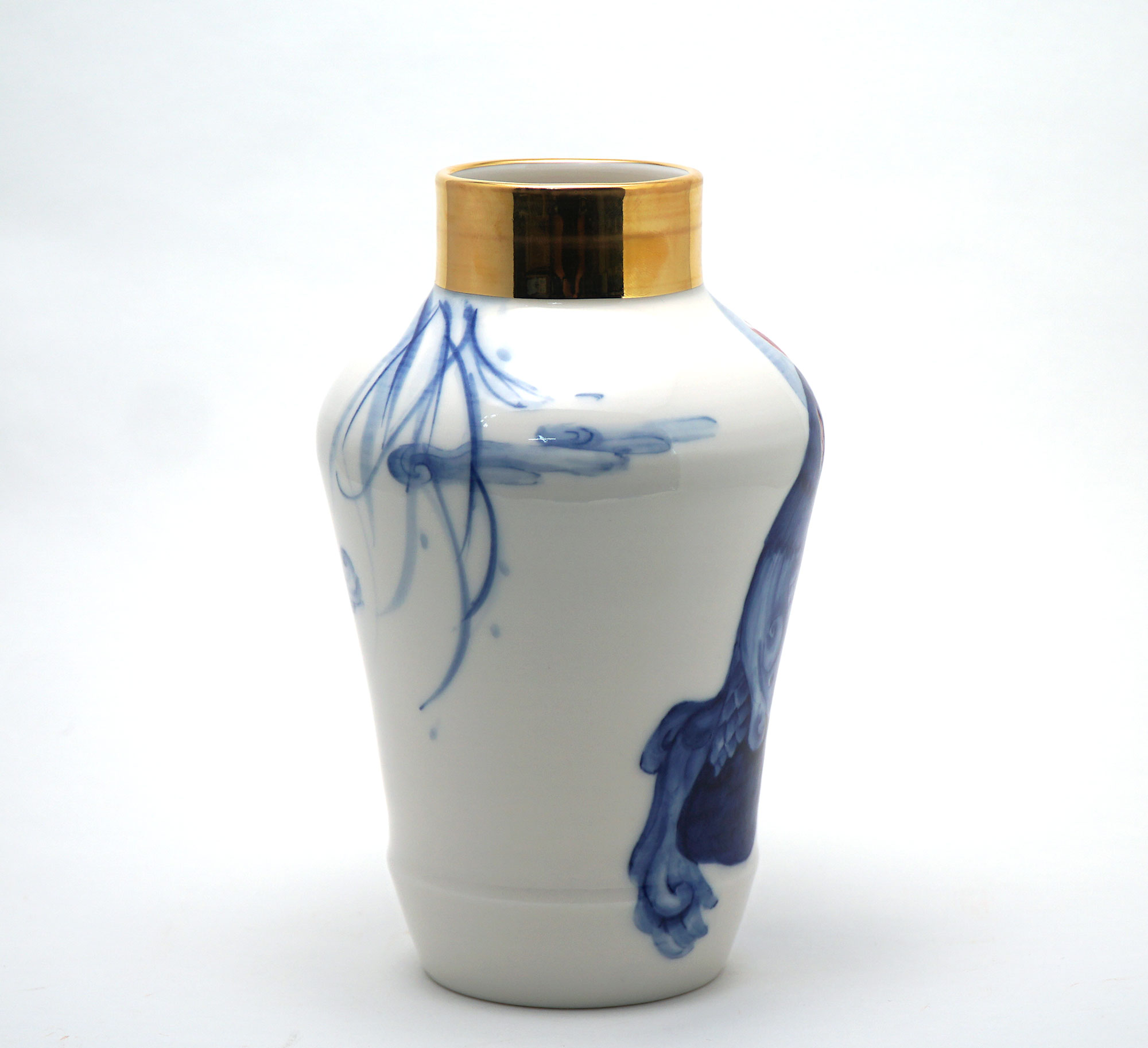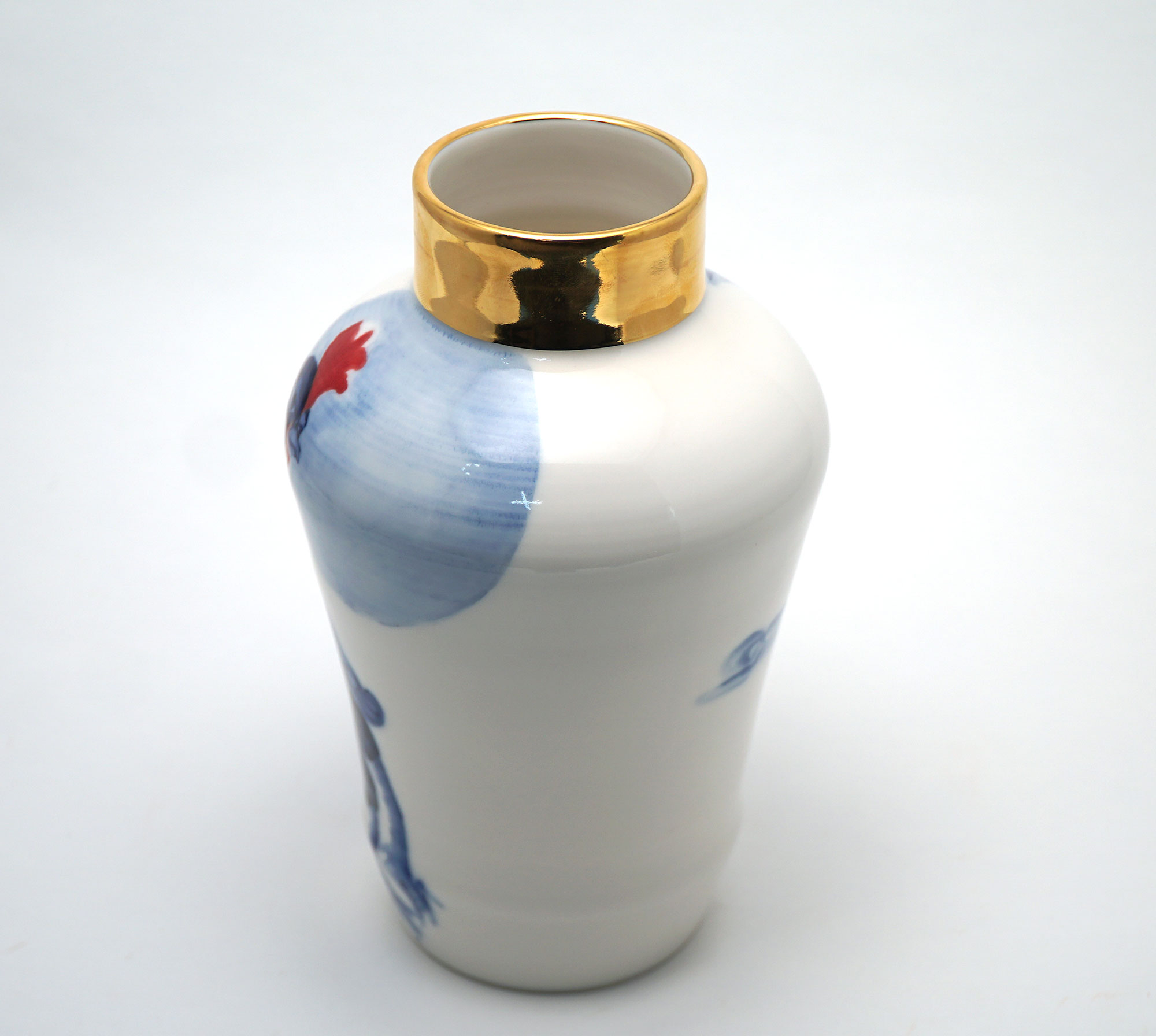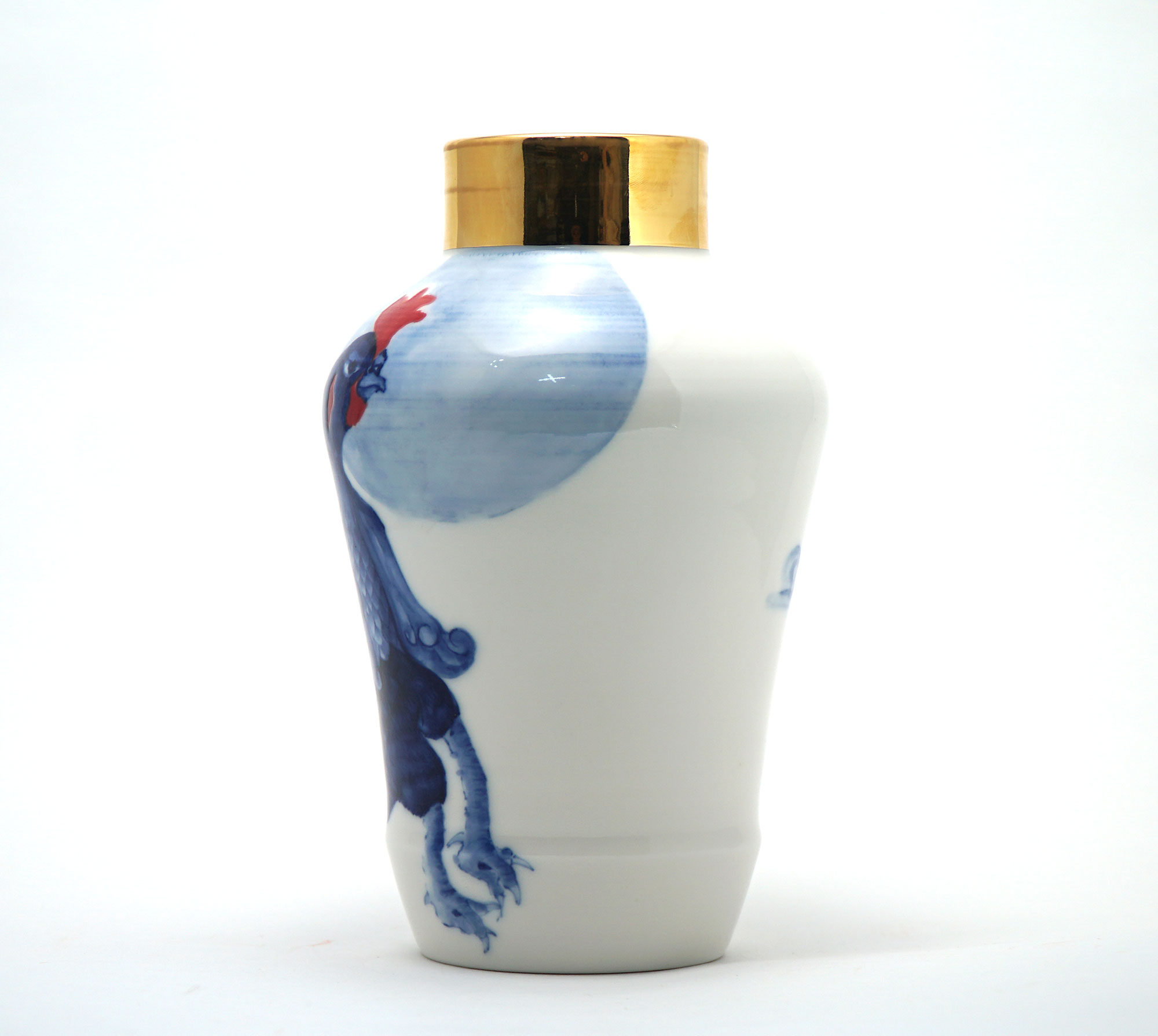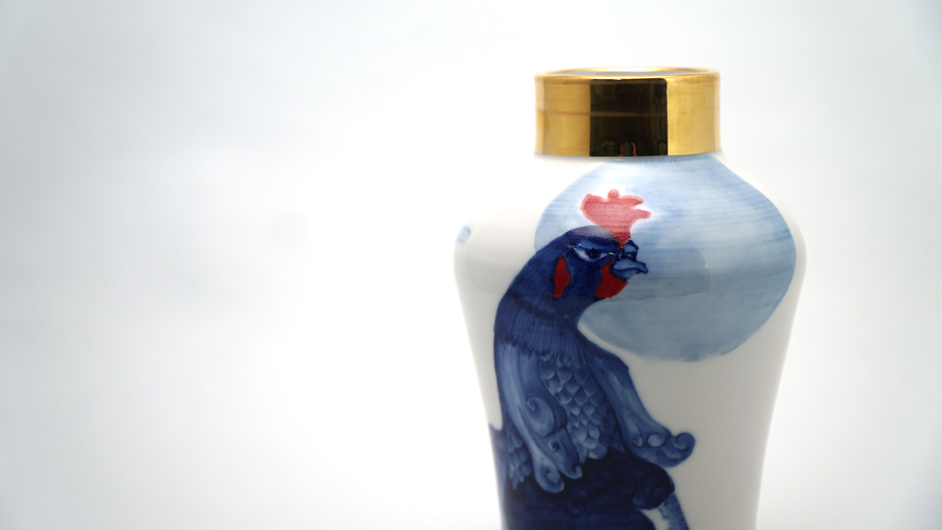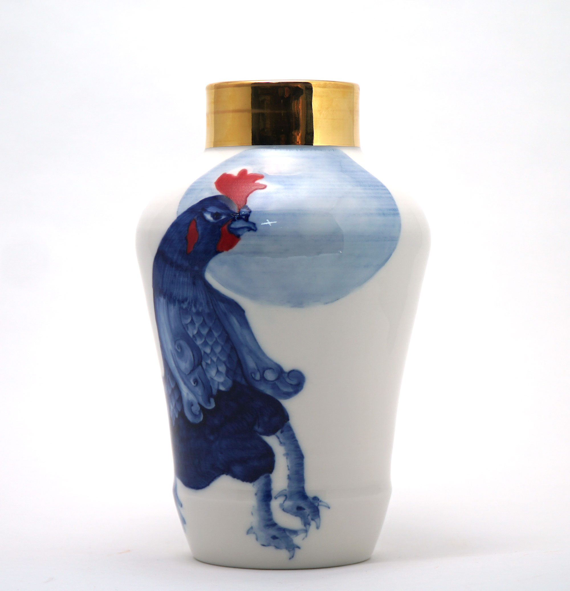 The Moon and Chickens vases are living objects where you can enjoy humorous expressions and playful movements of the chickens. The vases are hand painted and come in a variety of sizes and forms, allowing you to place one or more of them together to make your space even more unique.
