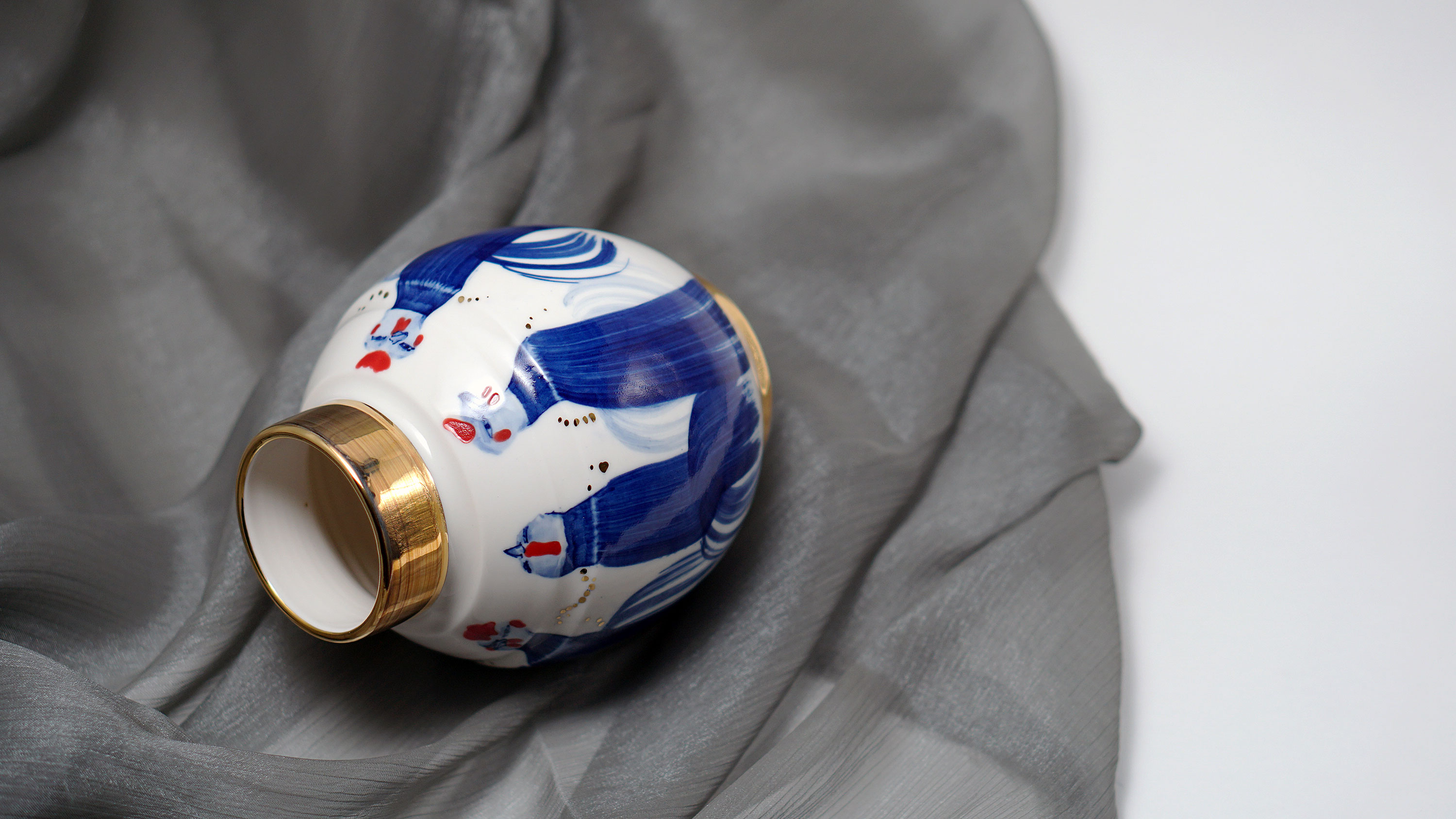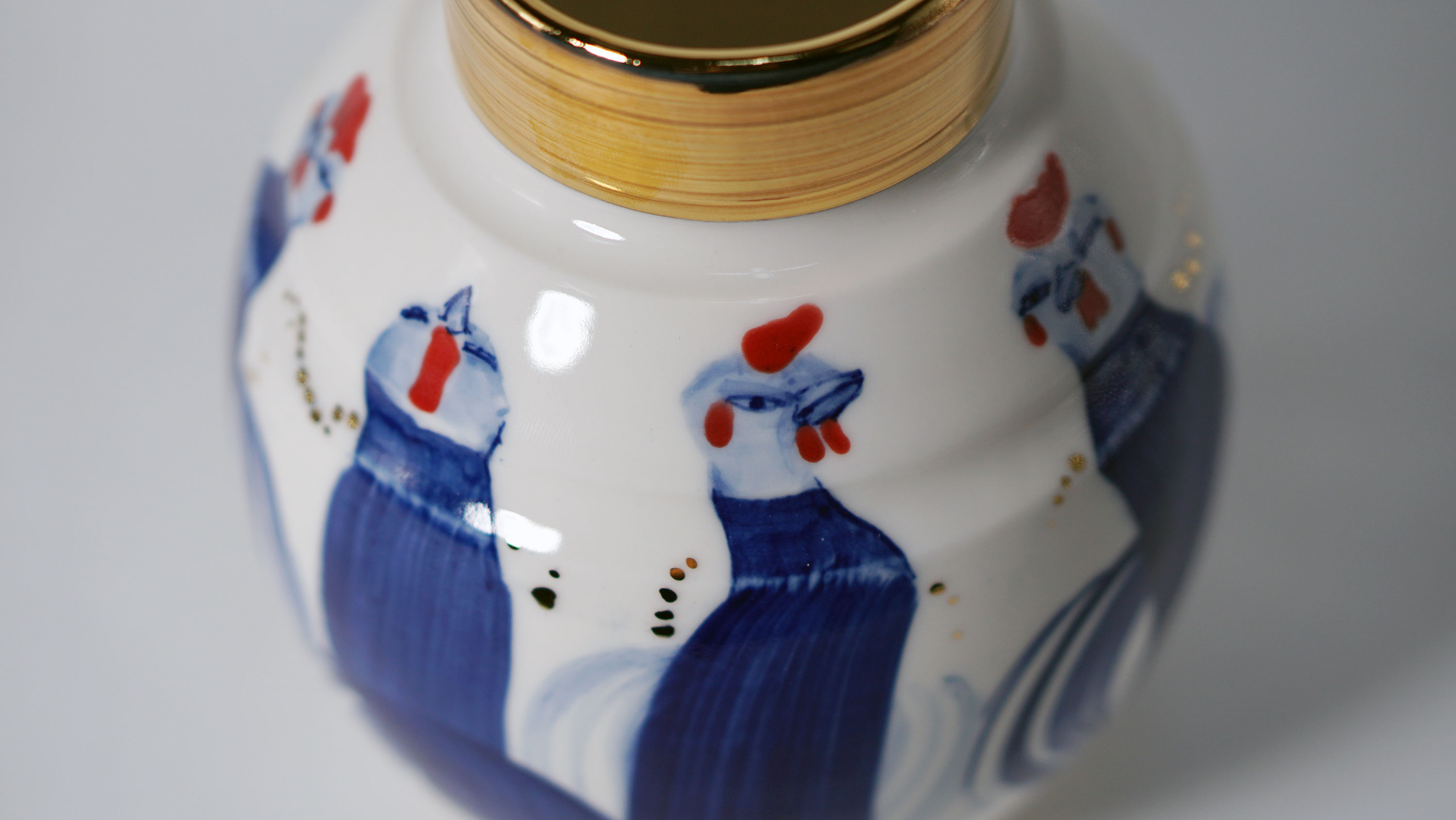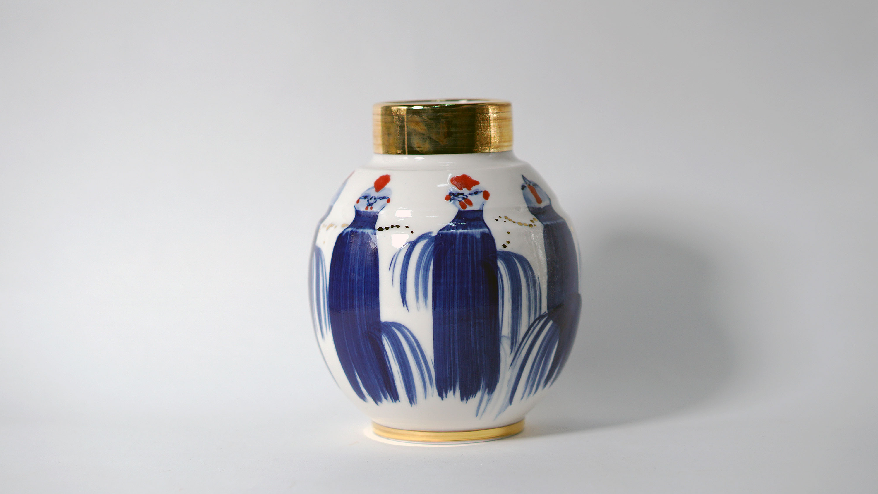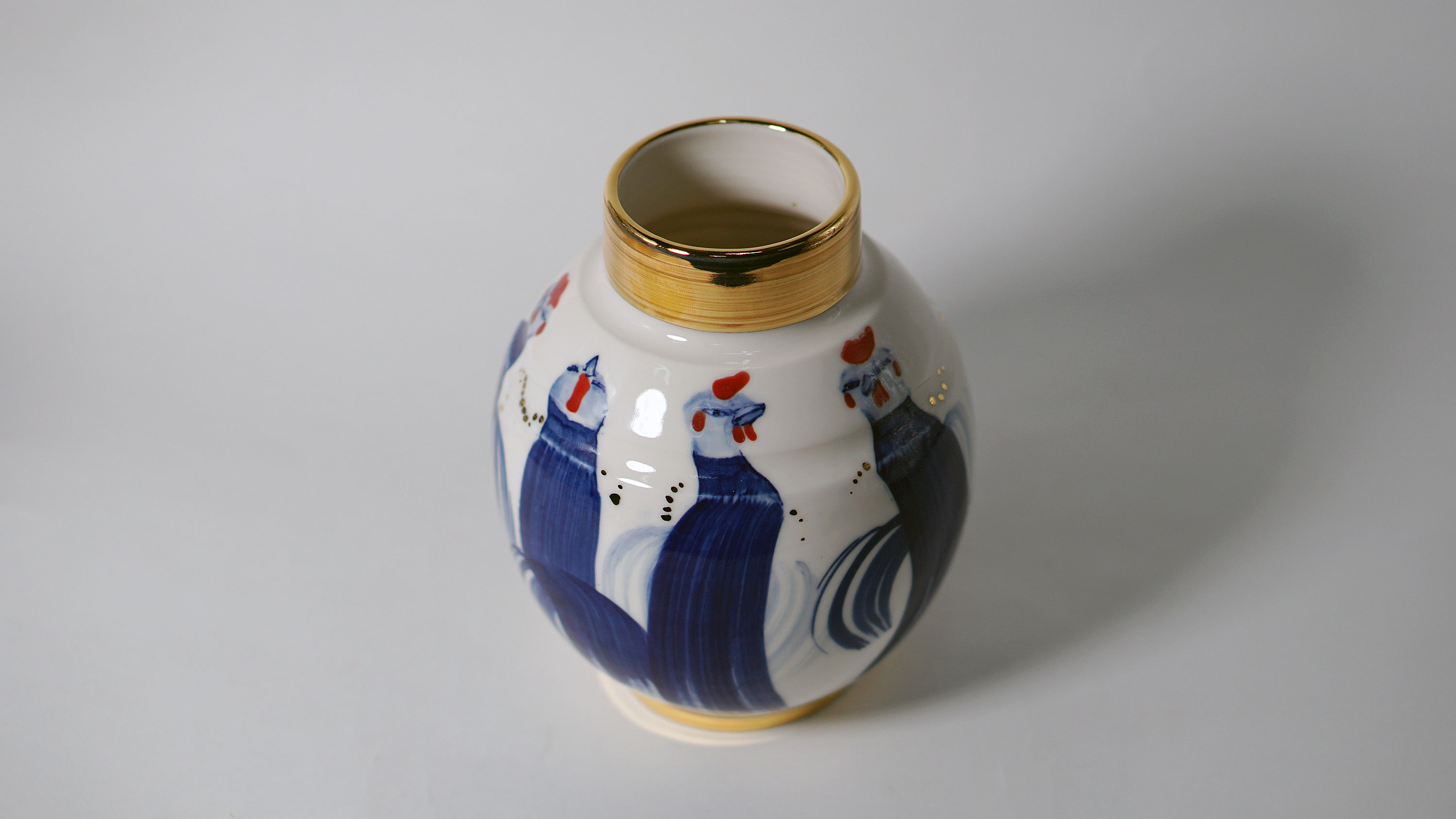 The Moon and Chickens vases are living objects where you can enjoy humorous expressions and playful movements of the chickens. The vases are hand painted and come in a variety of sizes and forms, allowing you to place one or more of them together to make your space even more unique.