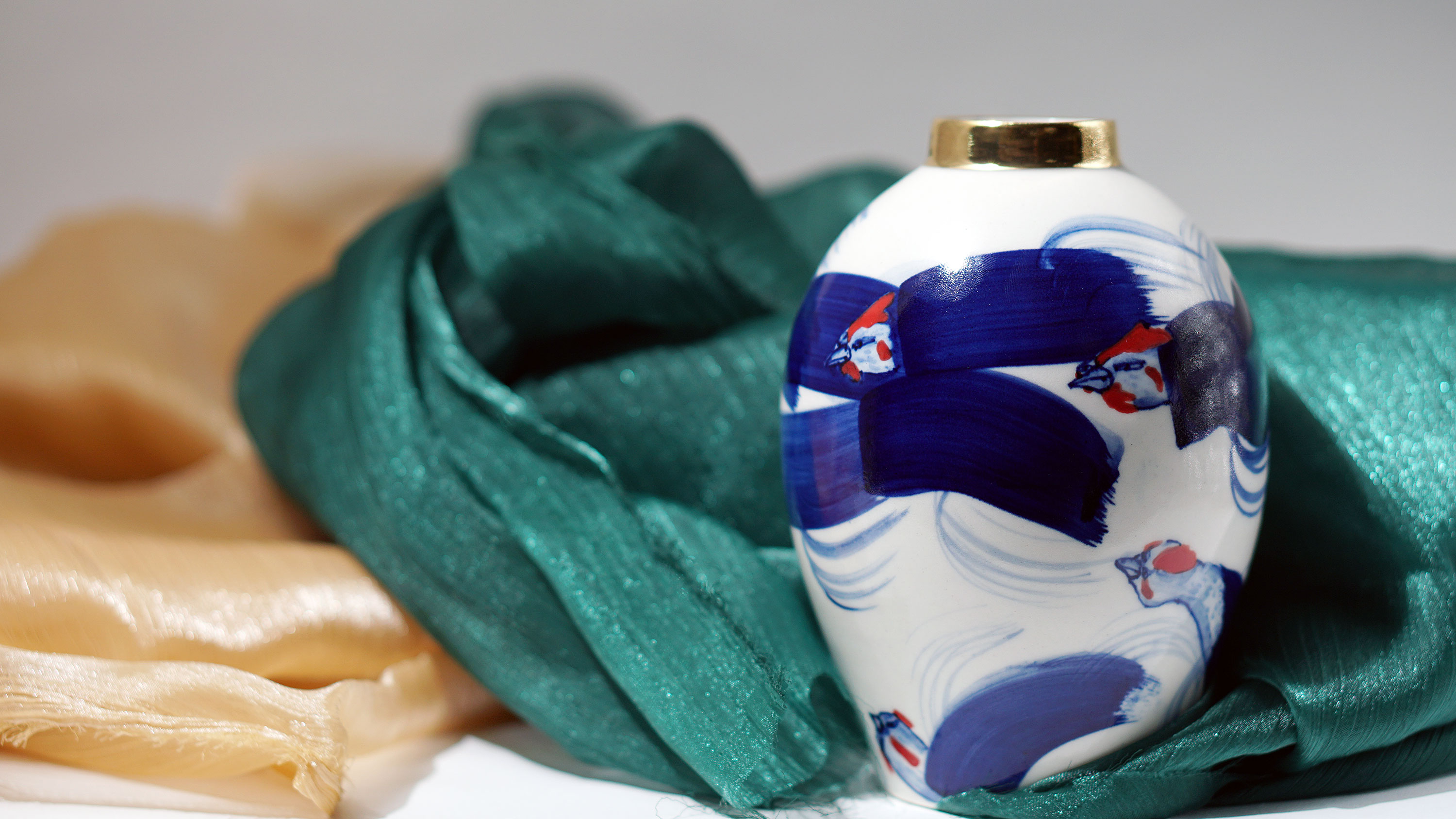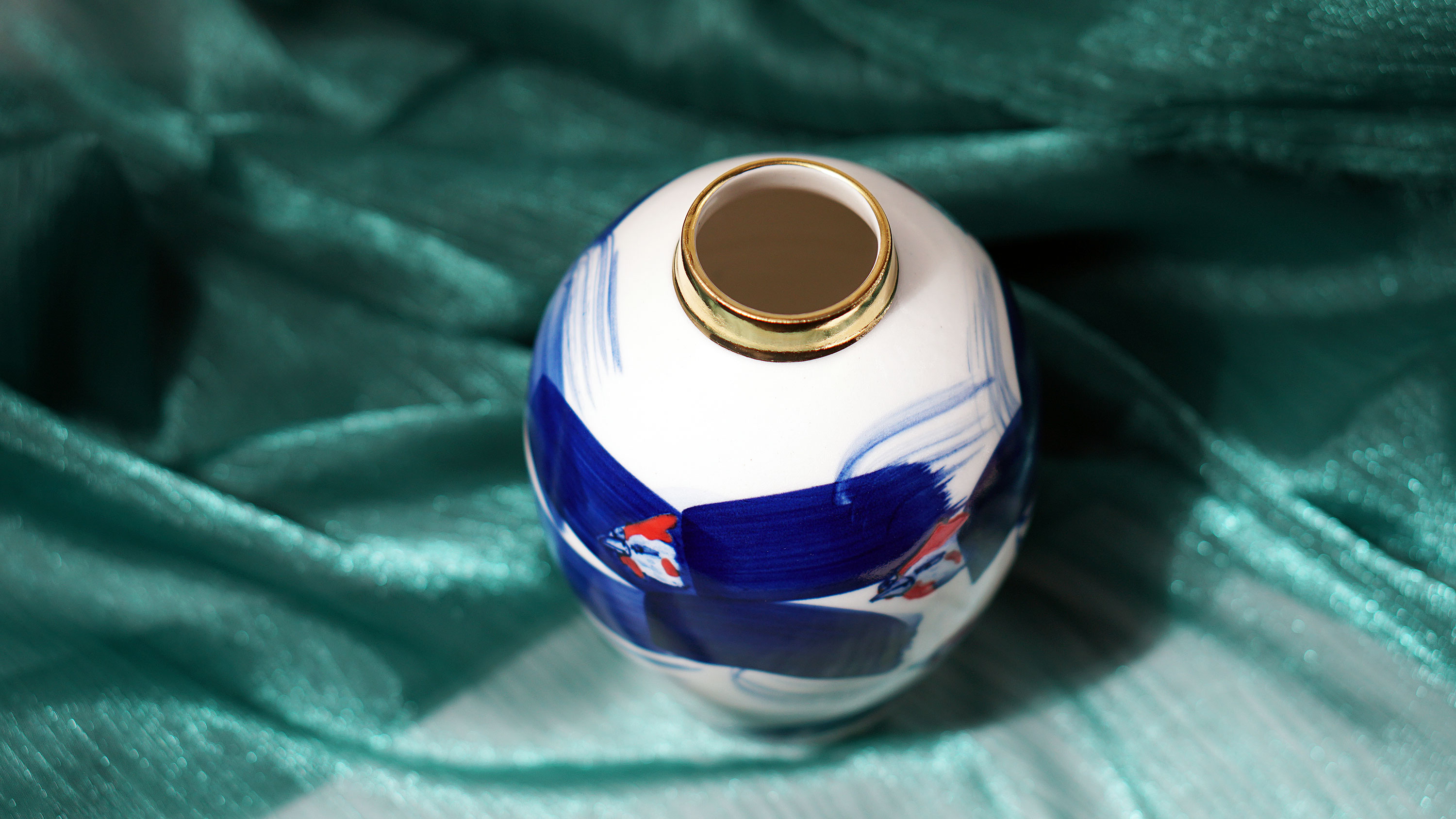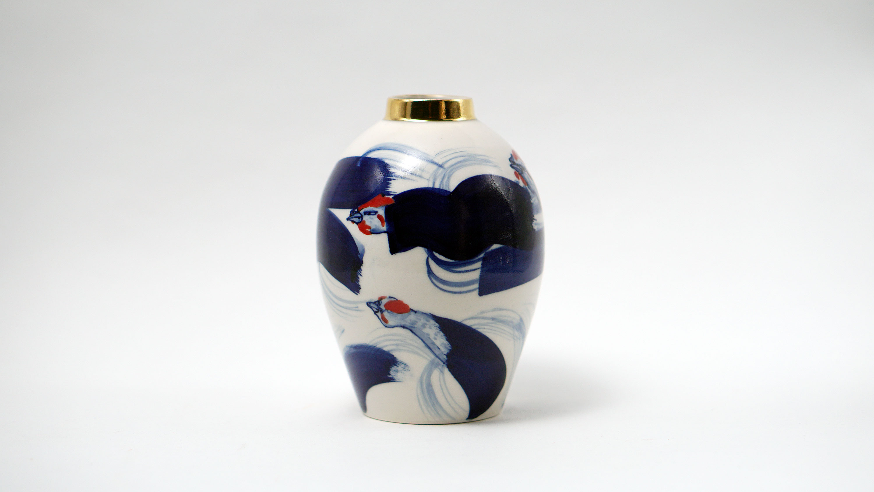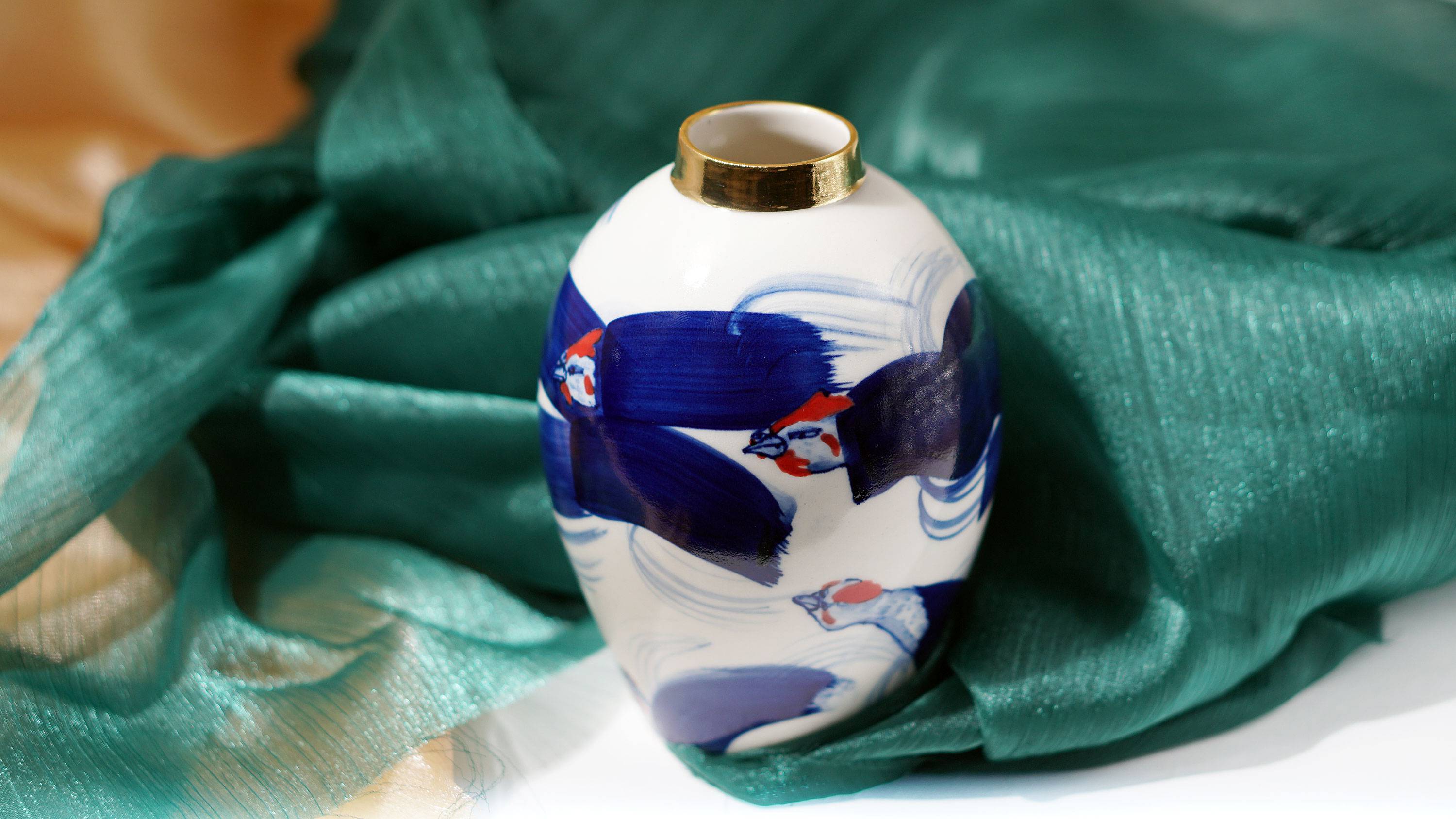 The Moon and Chickens vases are living objects where you can enjoy humorous expressions and playful movements of the chickens. The vases are hand painted and come in a variety of sizes and forms, allowing you to place one or more of them together to make your space even more unique.