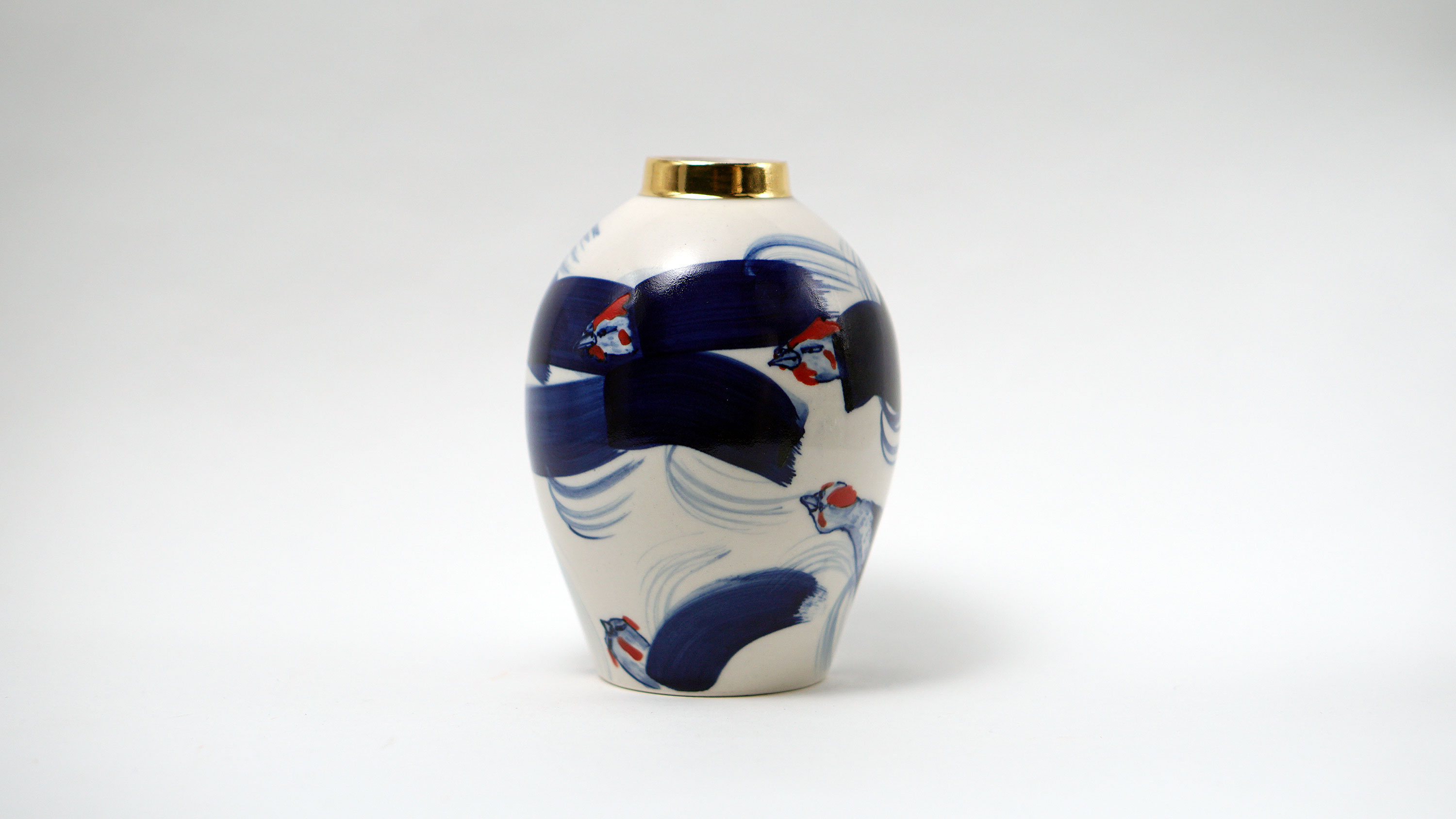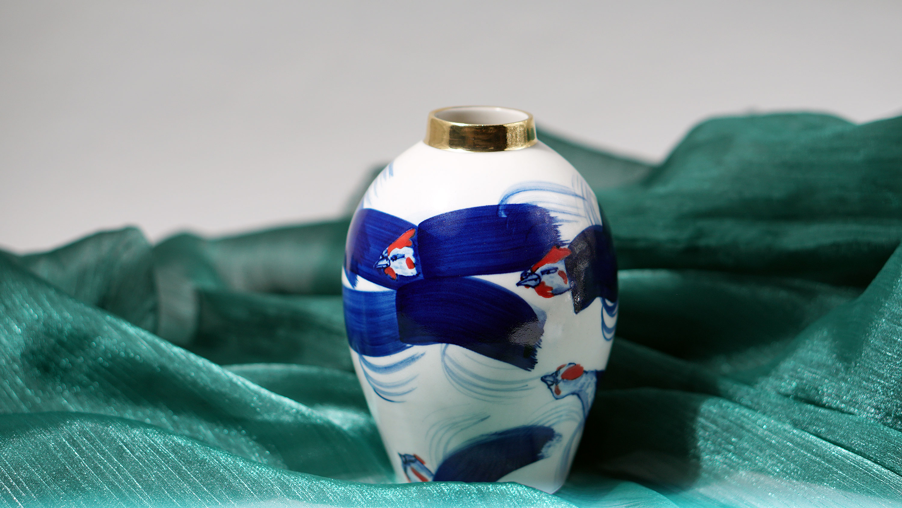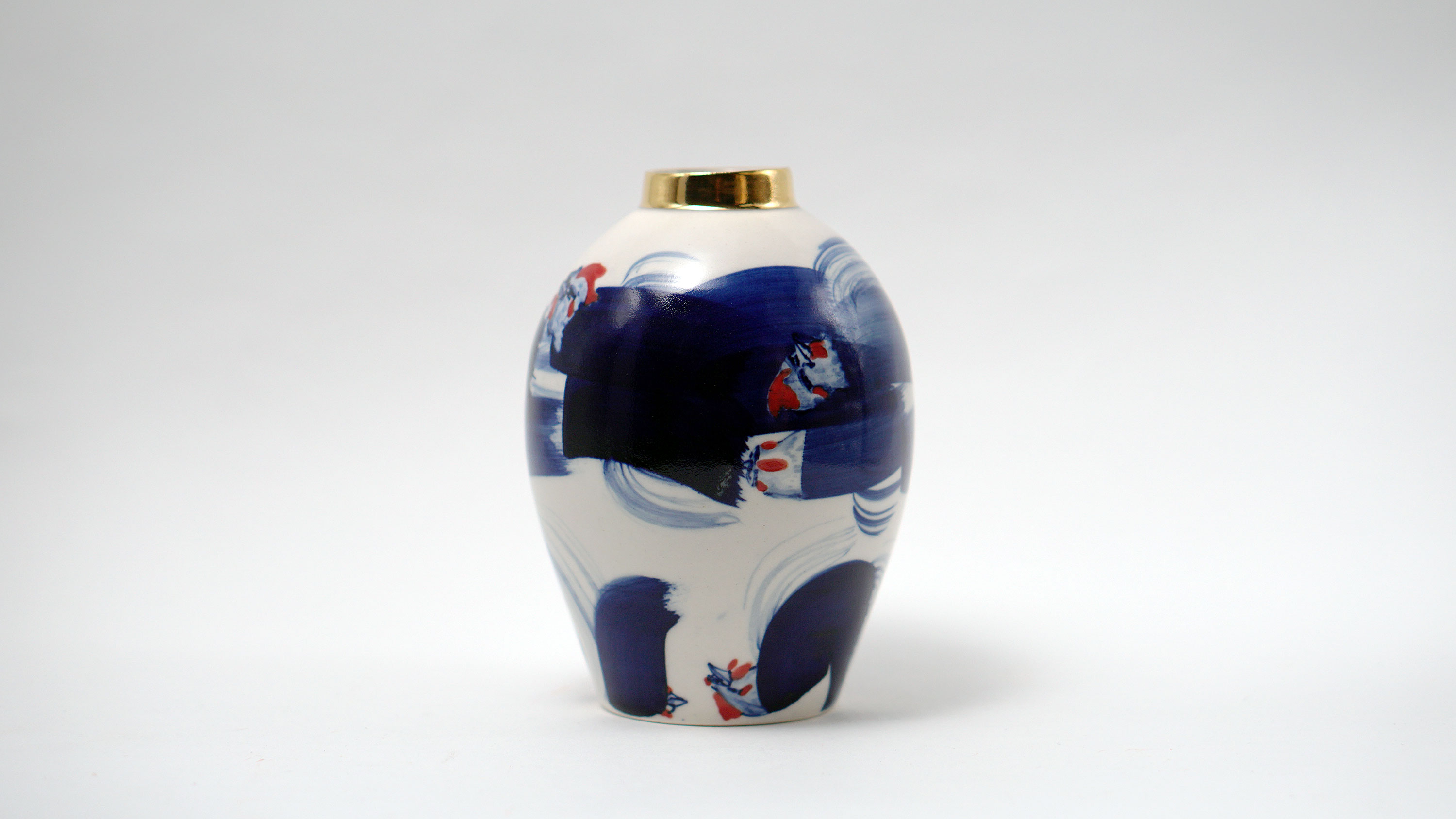 The Moon and Chickens vases are living objects where you can enjoy humorous expressions and playful movements of the chickens. The vases are hand painted and come in a variety of sizes and forms, allowing you to place one or more of them together to make your space even more unique.