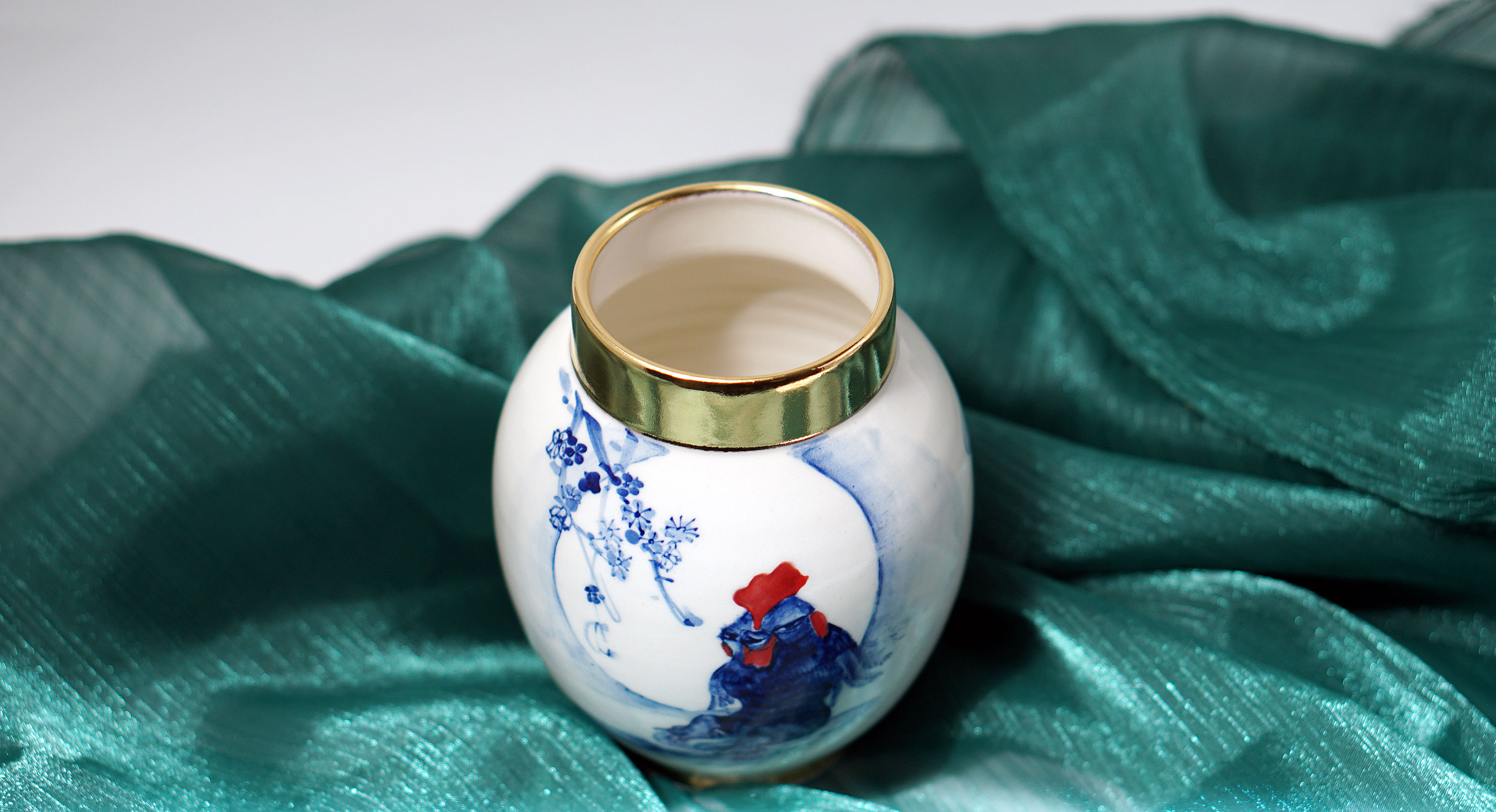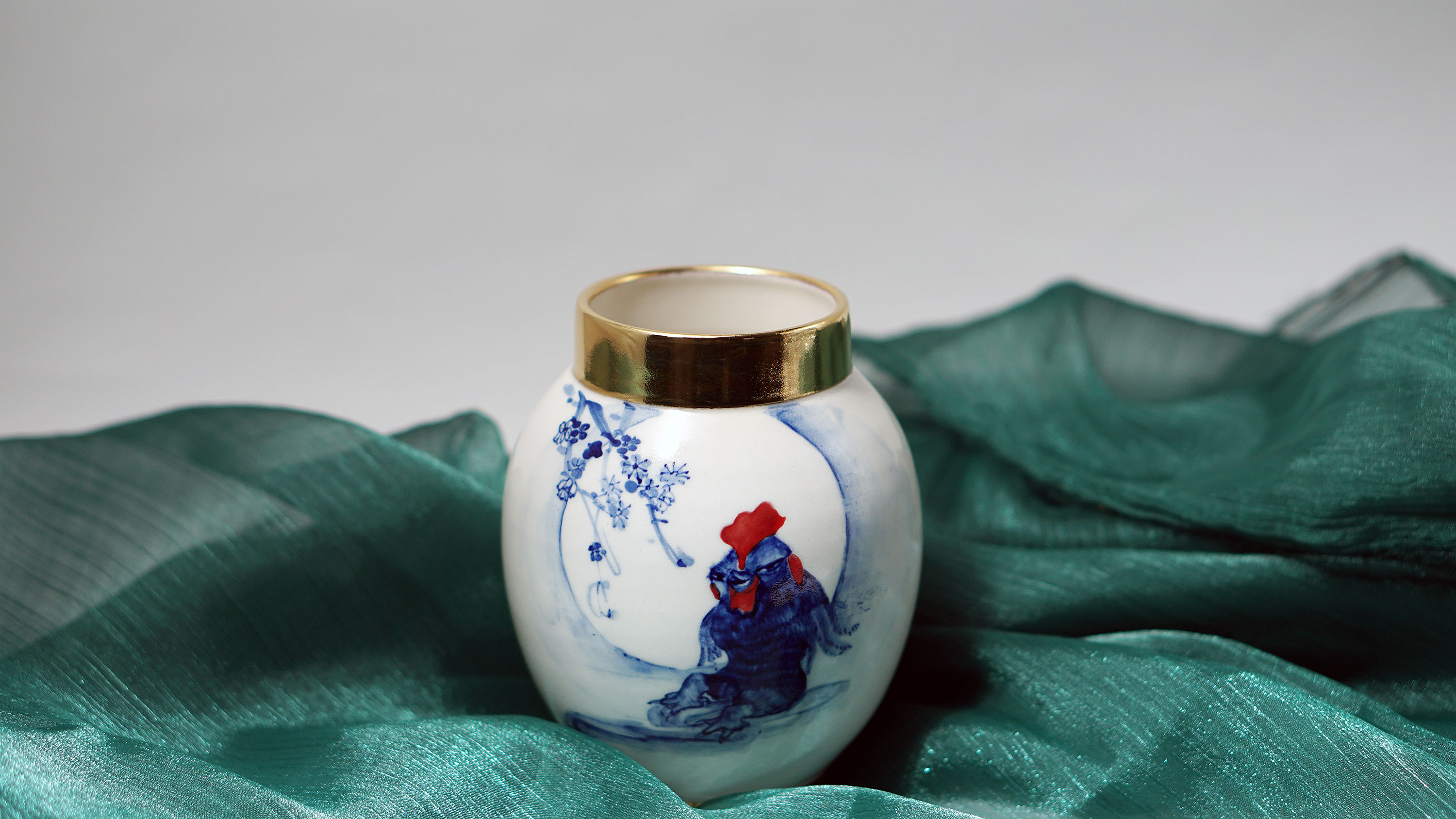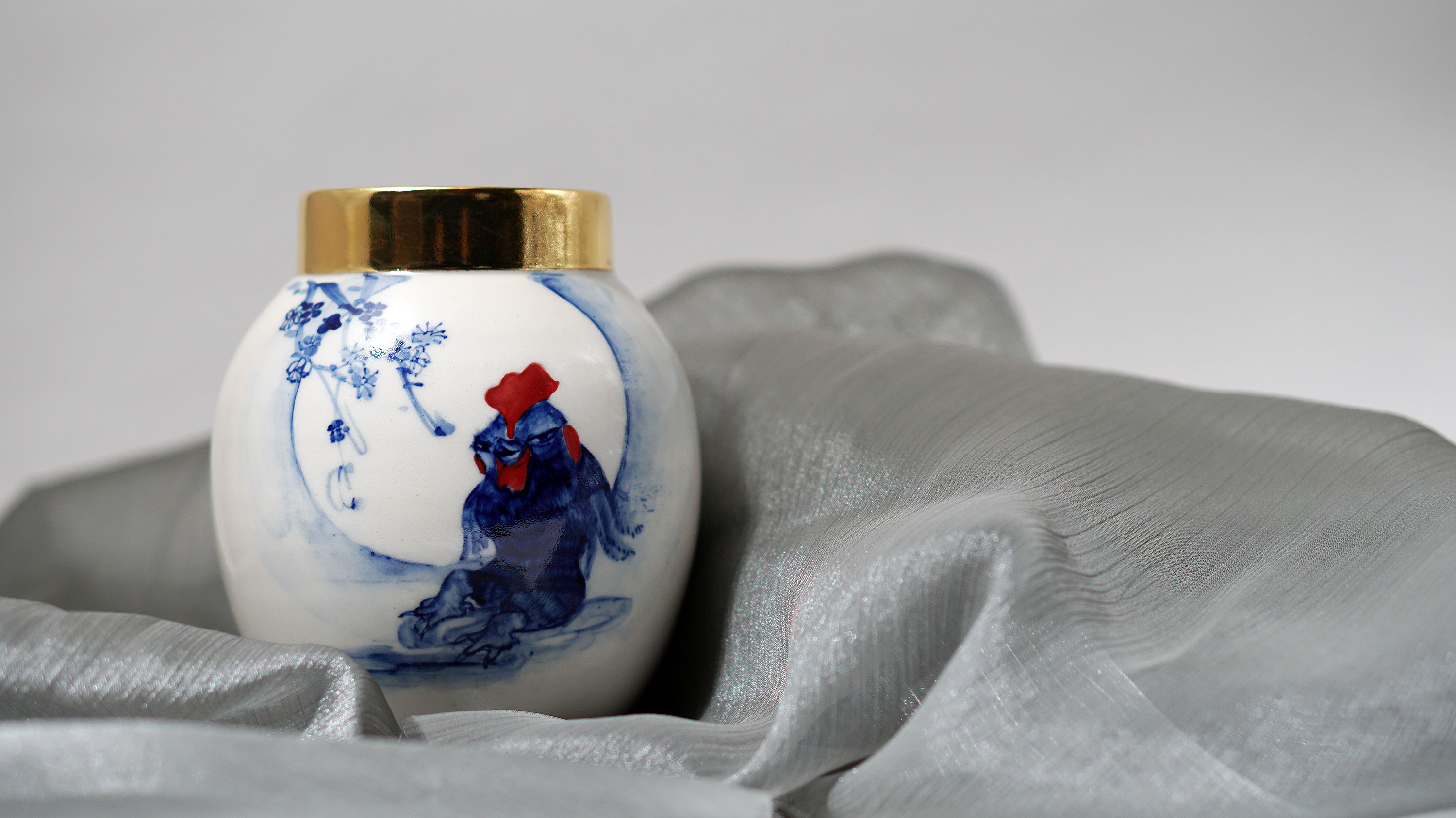 The Moon and Chickens vases are living objects where you can enjoy humorous expressions and playful movements of the chickens. The vases are hand painted and come in a variety of sizes and forms, allowing you to place one or more of them together to make your space even more unique.