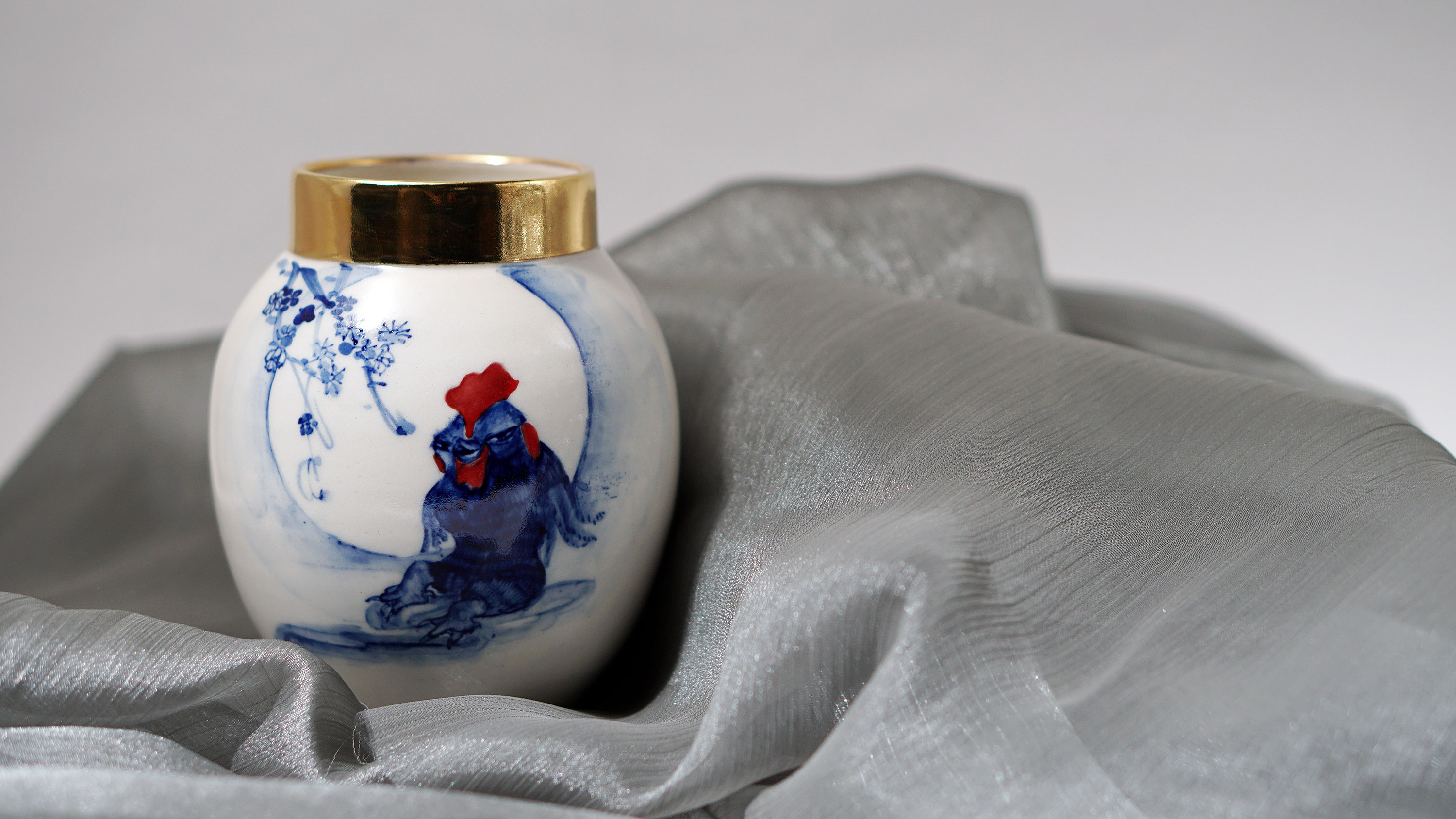 The Moon and Chickens vases are living objects where you can enjoy humorous expressions and playful movements of the chickens. The vases are hand painted and come in a variety of sizes and forms, allowing you to place one or more of them together to make your space even more unique.