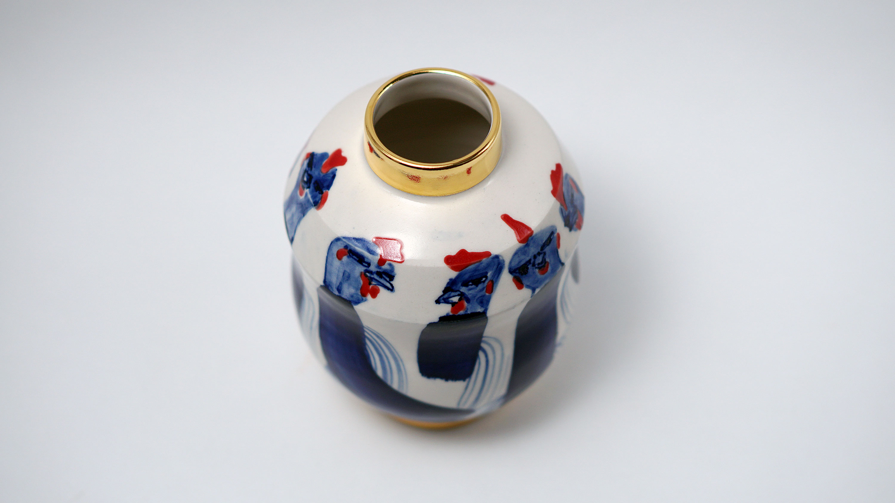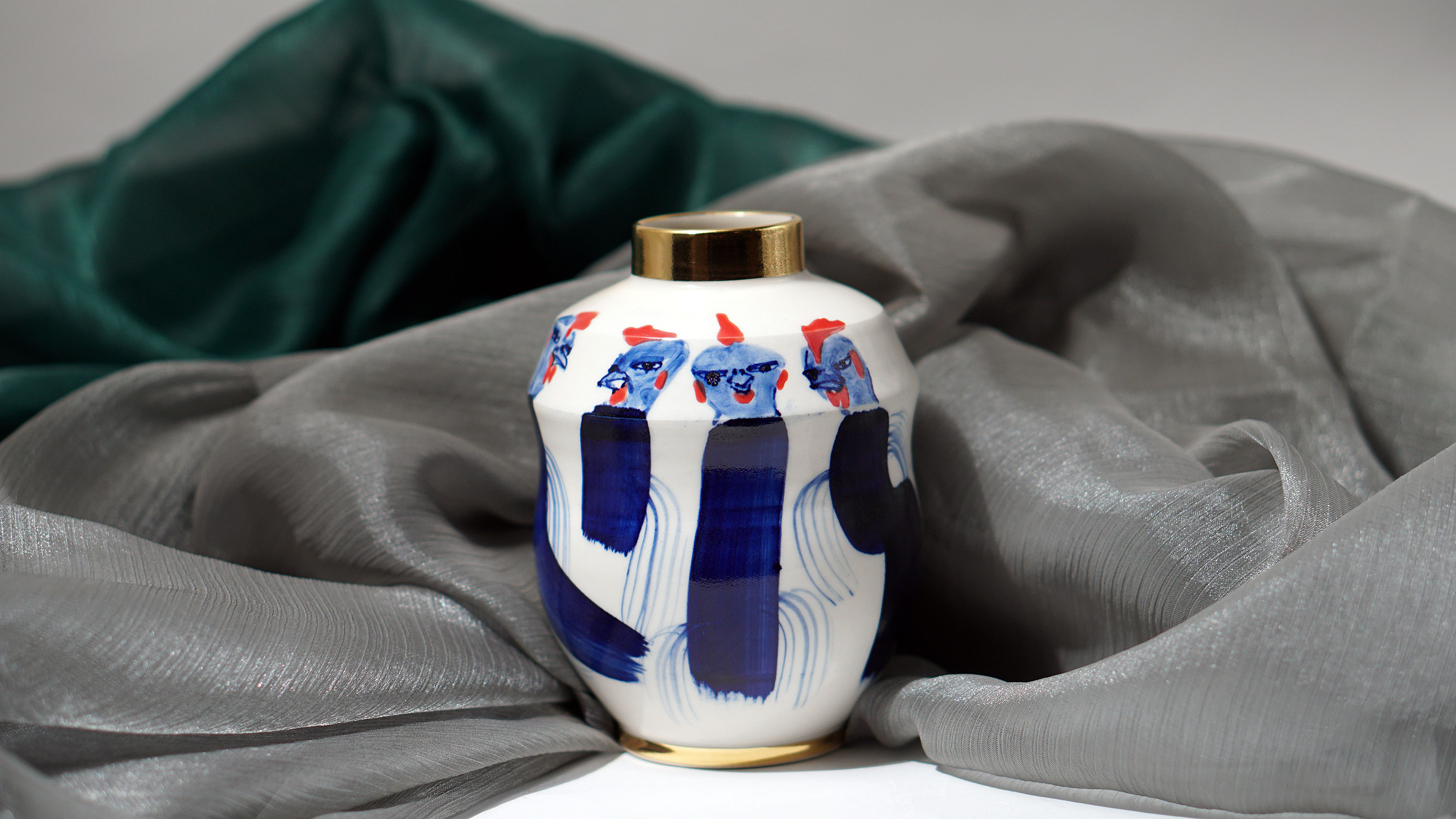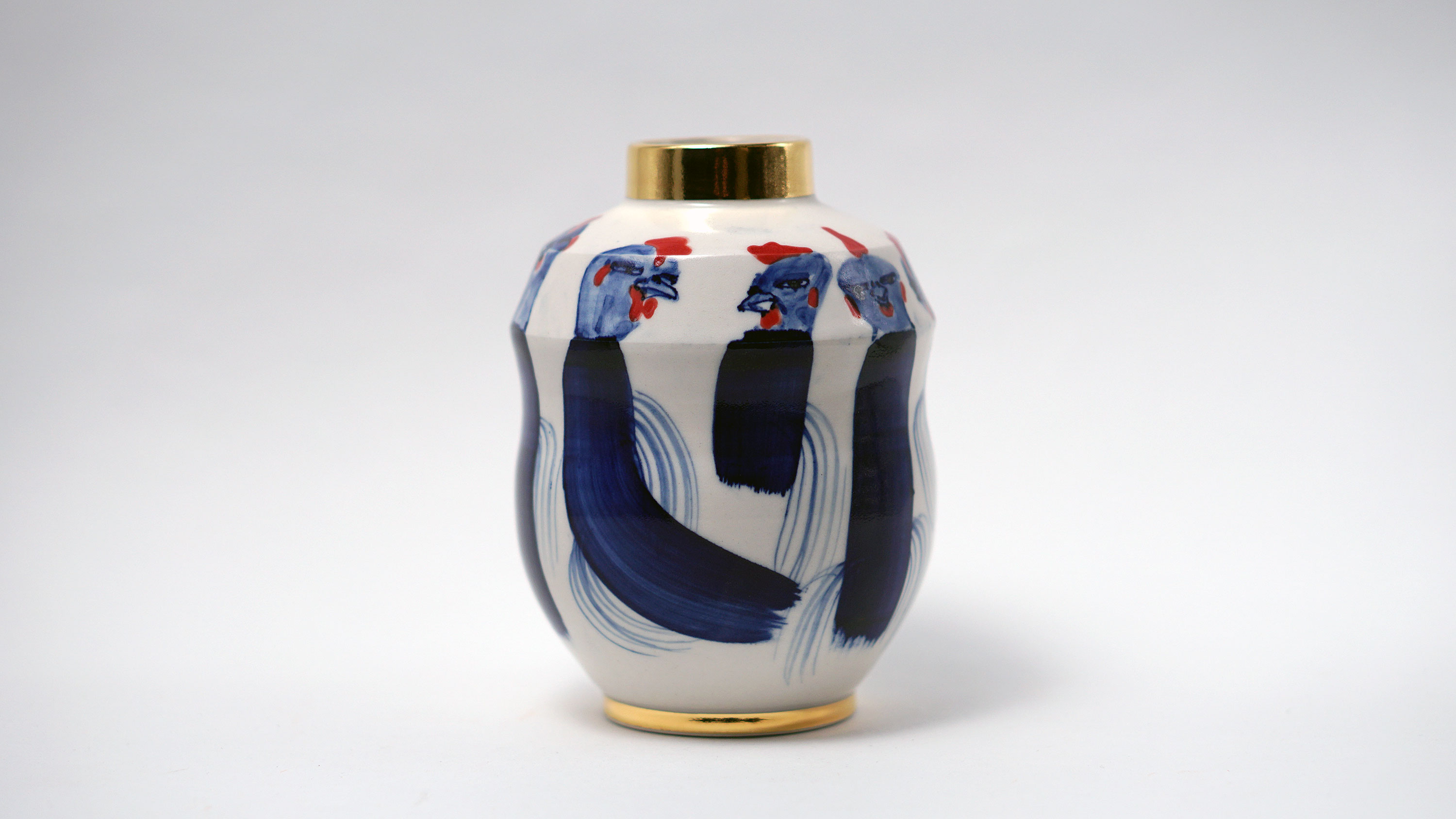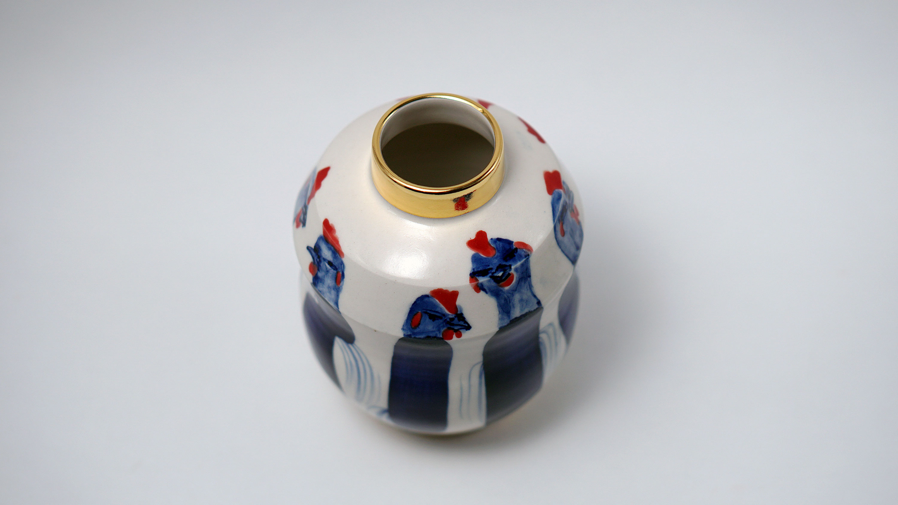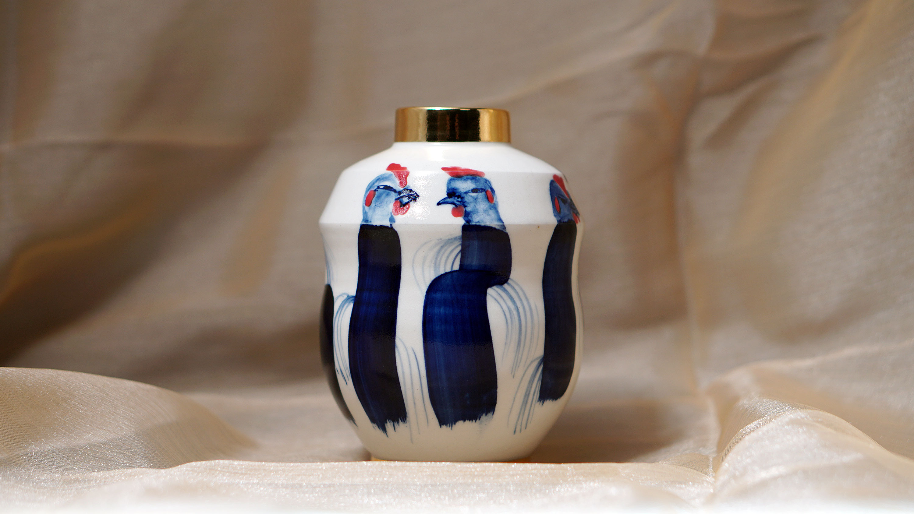 The Moon and Chickens vases are living objects where you can enjoy humorous expressions and playful movements of the chickens. The vases are hand painted and come in a variety of sizes and forms, allowing you to place one or more of them together to make your space even more unique.