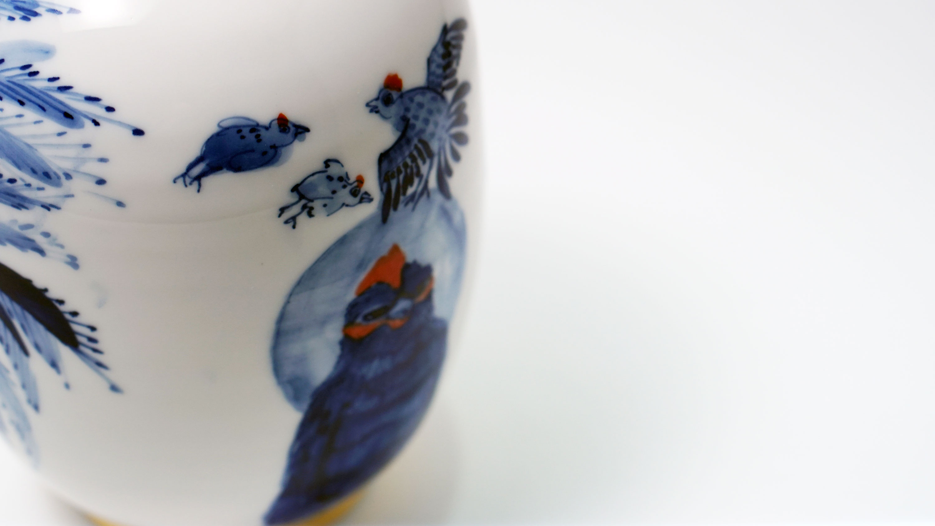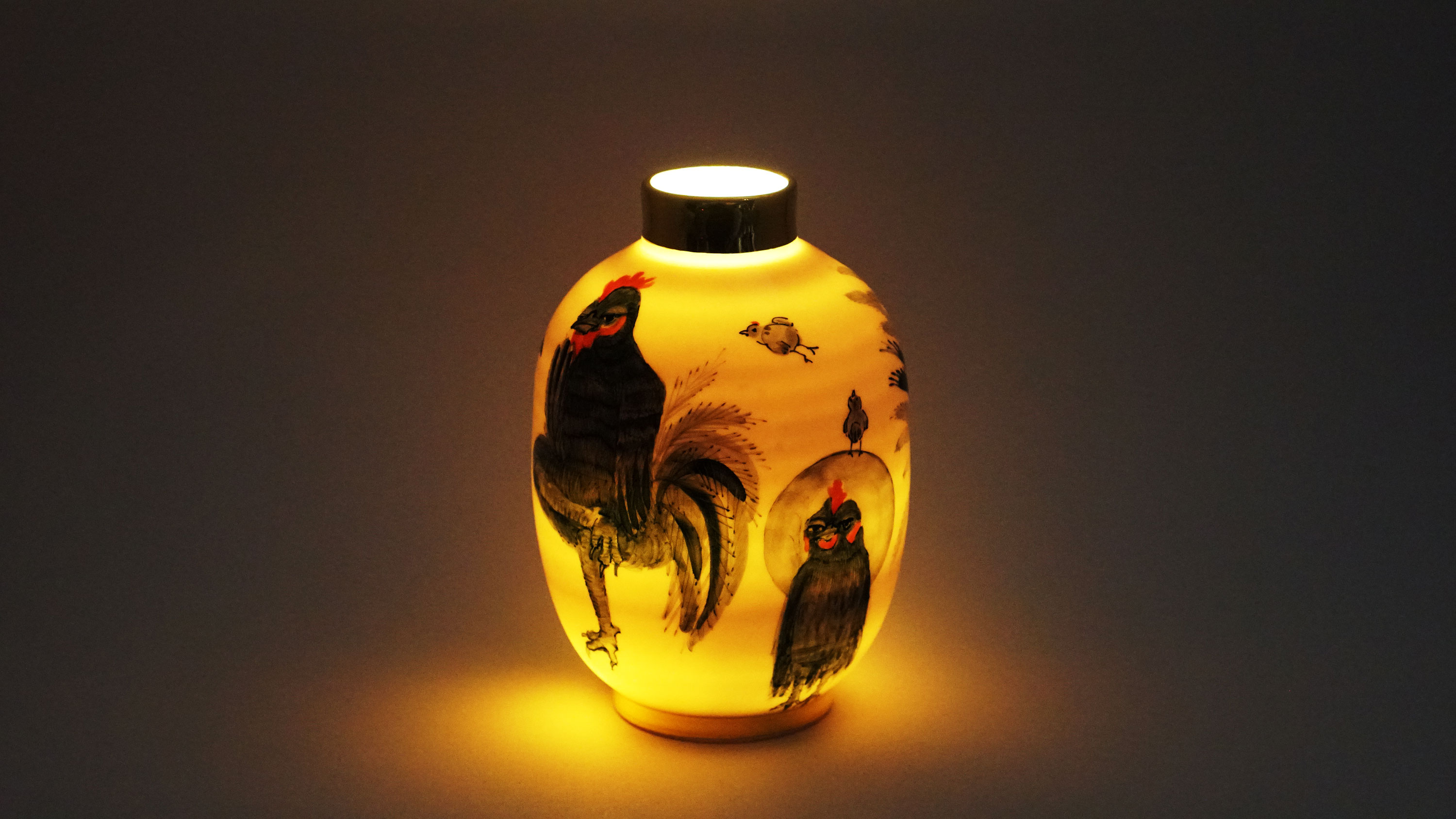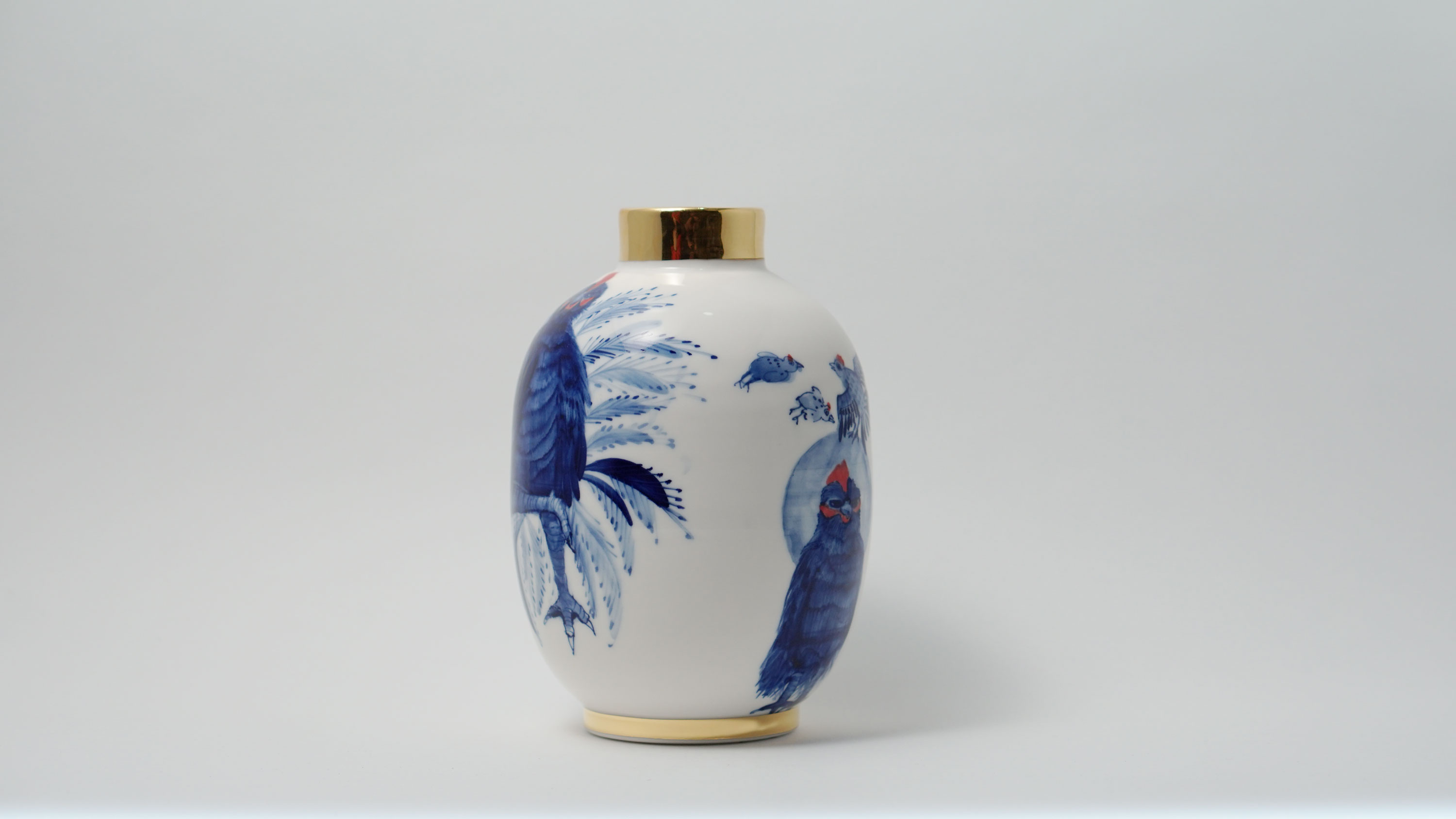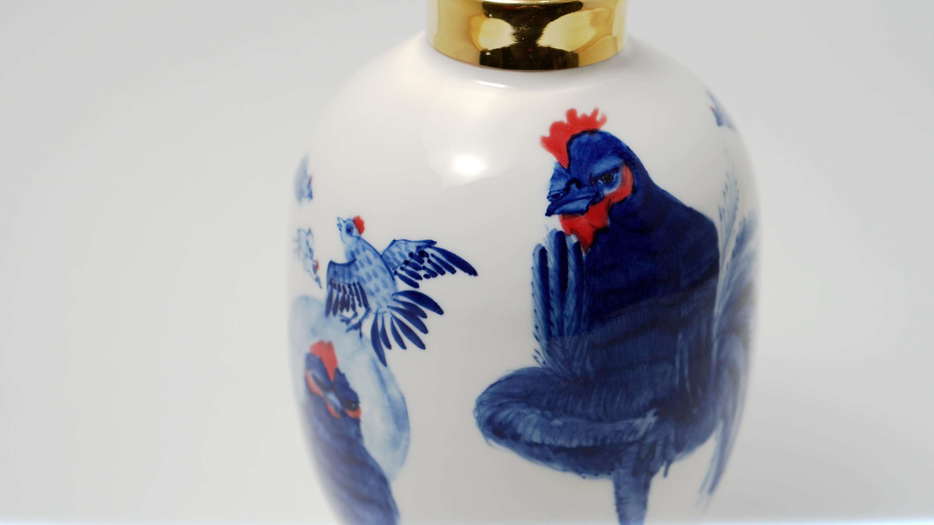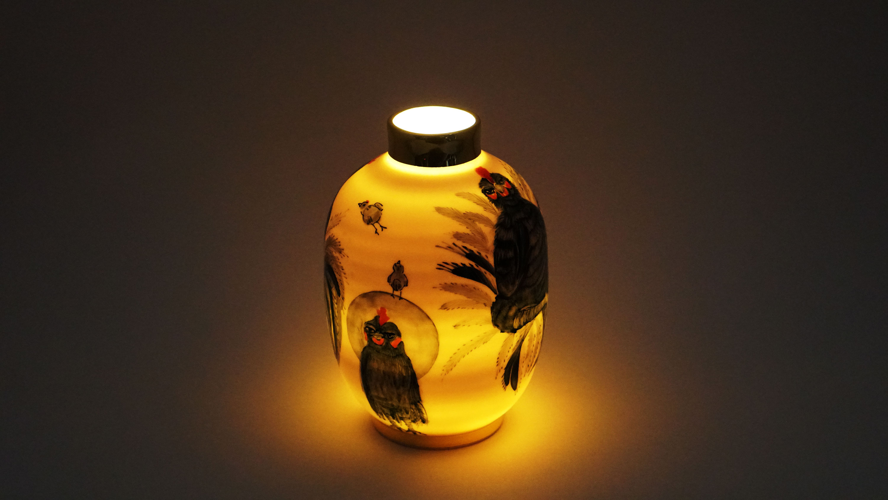 The Moon and Chickens vases are living objects where you can enjoy humorous expressions and playful movements of the chickens. The vases are hand painted and come in a variety of sizes and forms, allowing you to place one or more of them together to make your space even more unique.