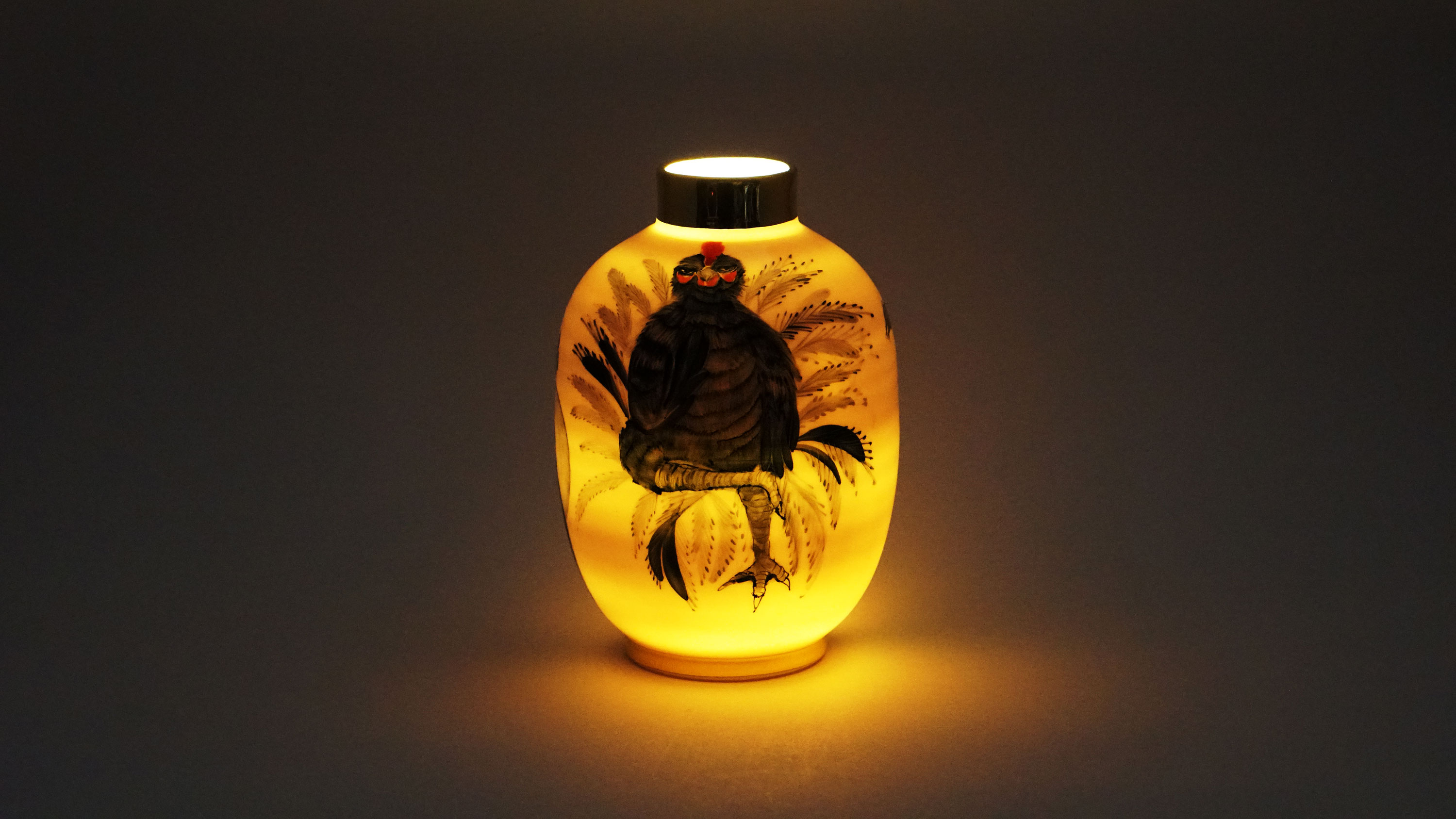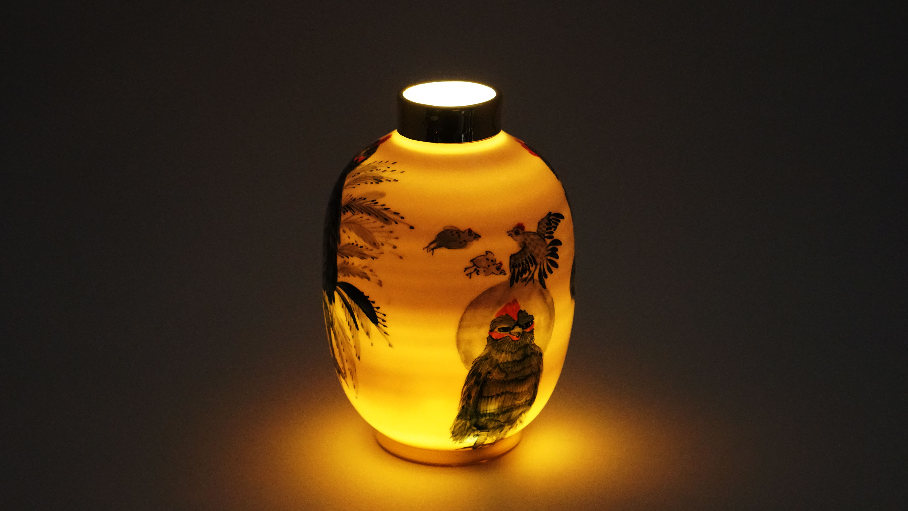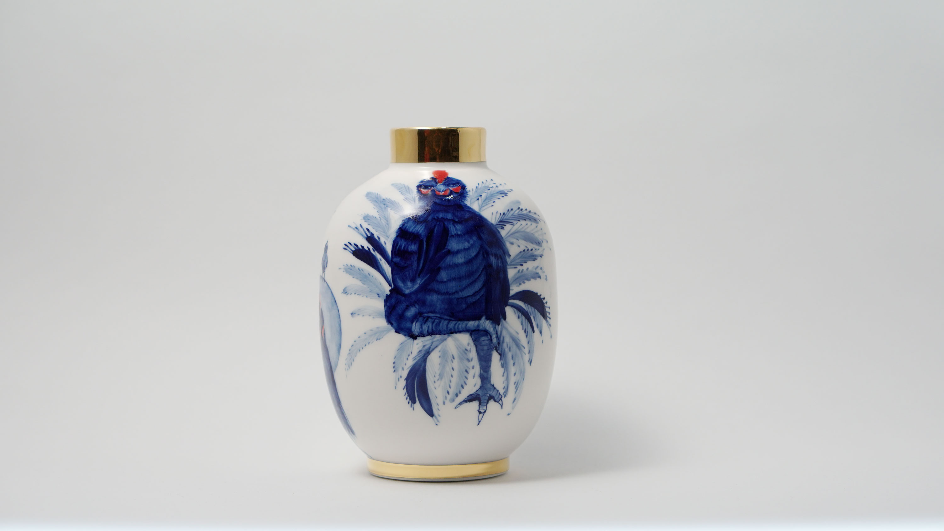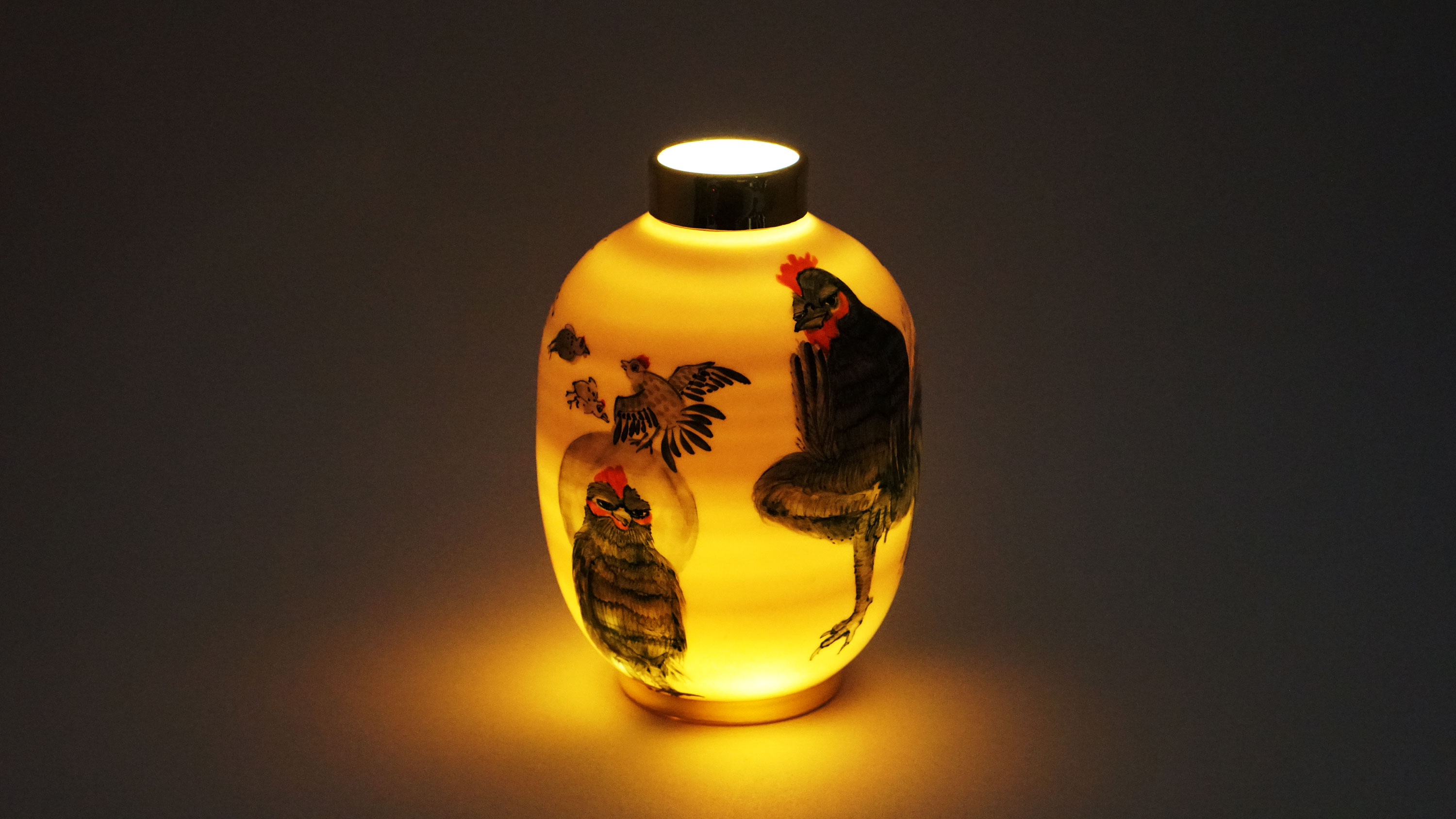The Moon and Chickens vases are living objects where you can enjoy humorous expressions and playful movements of the chickens. The vases are hand painted and come in a variety of sizes and forms, allowing you to place one or more of them together to make your space even more unique.