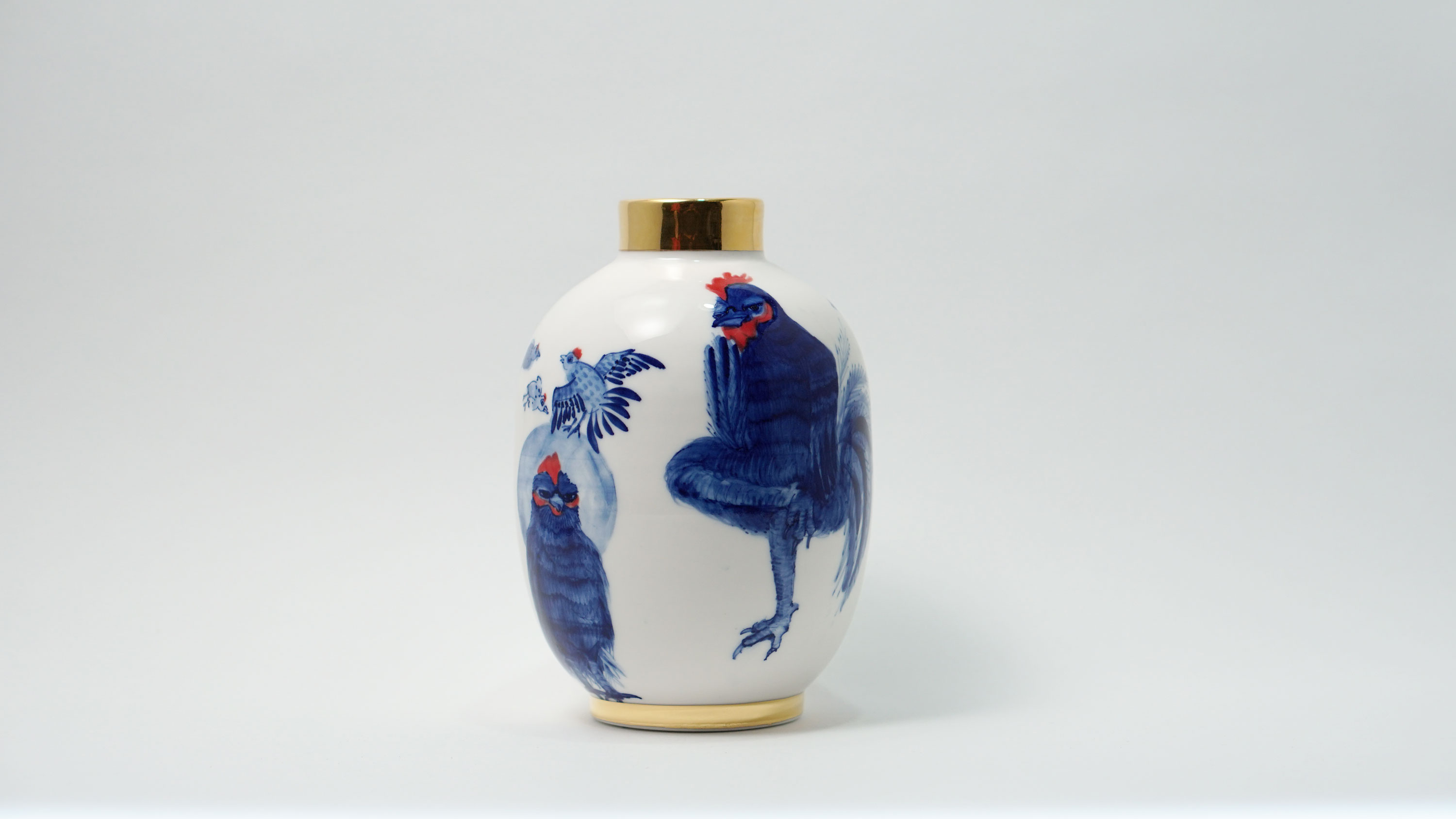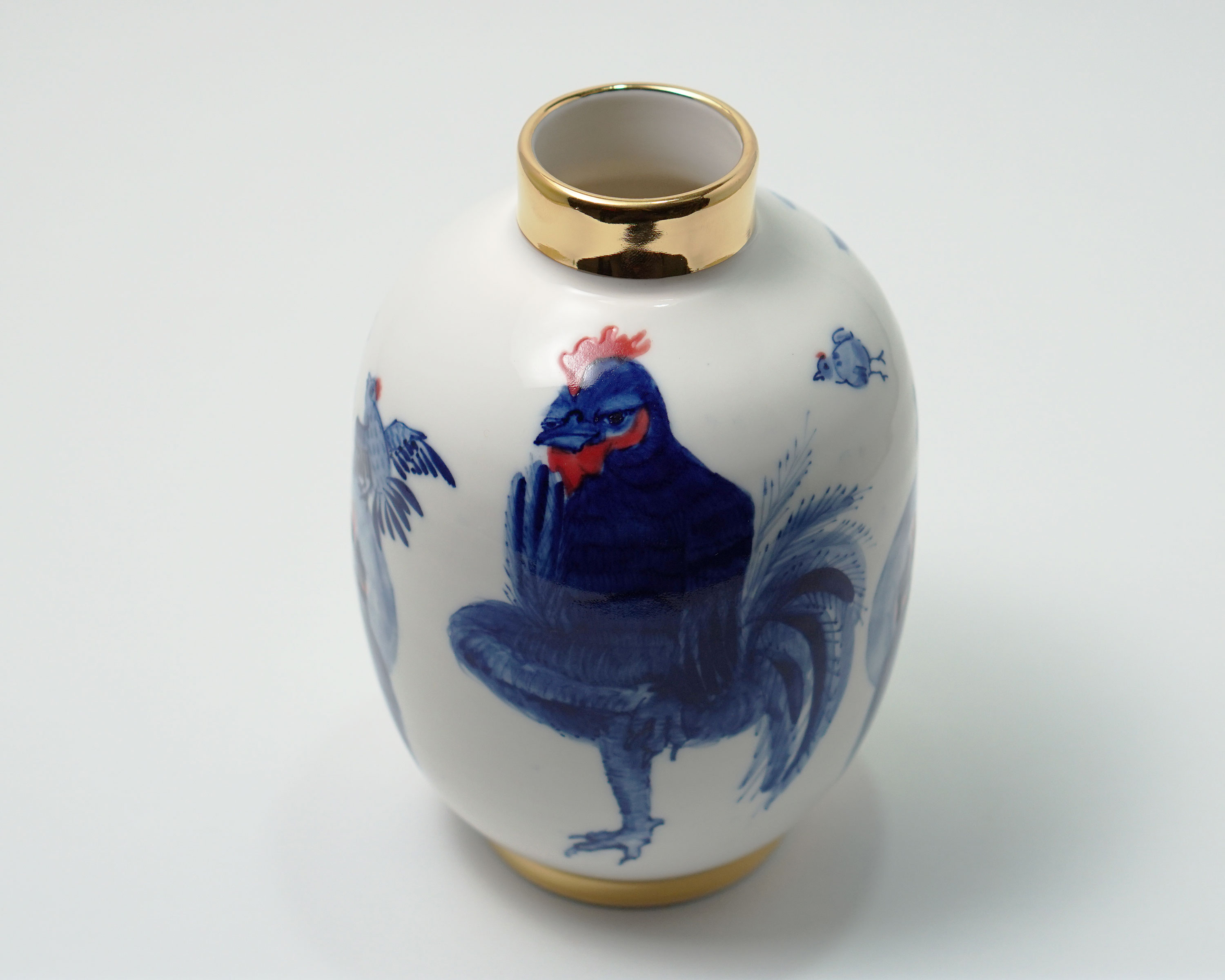 The Moon and Chickens vases are living objects where you can enjoy humorous expressions and playful movements of the chickens. The vases are hand painted and come in a variety of sizes and forms, allowing you to place one or more of them together to make your space even more unique.
