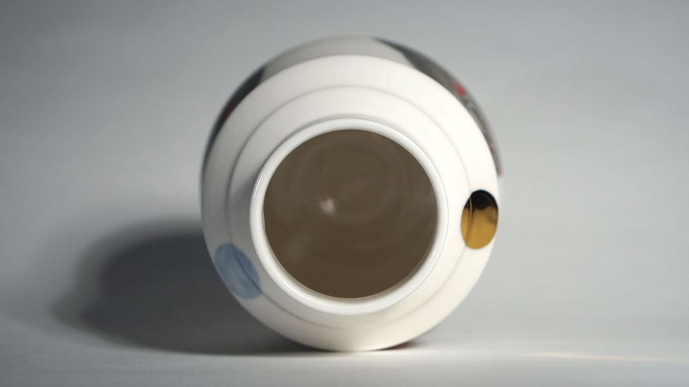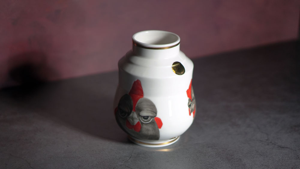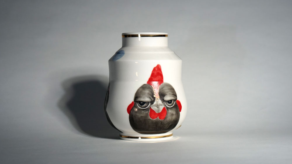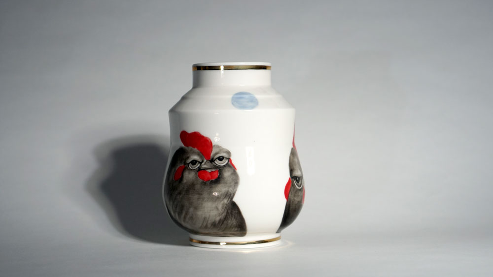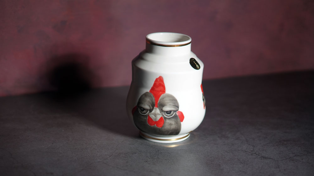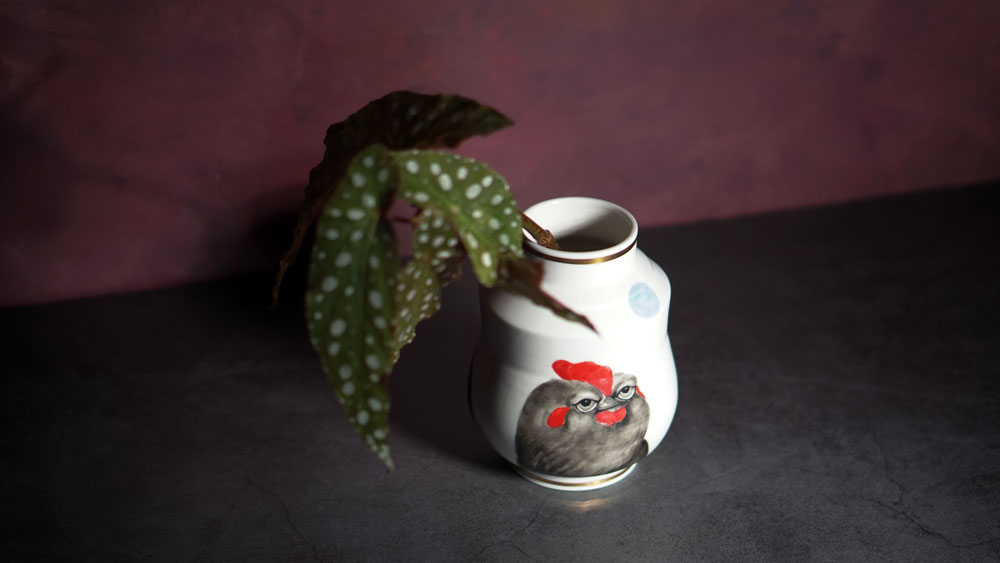 The Moon and Chickens vases are living objects where you can enjoy humorous expressions and playful movements of the chickens. The vases are hand painted and come in a variety of sizes and forms, allowing you to place one or more of them together to make your space even more unique.