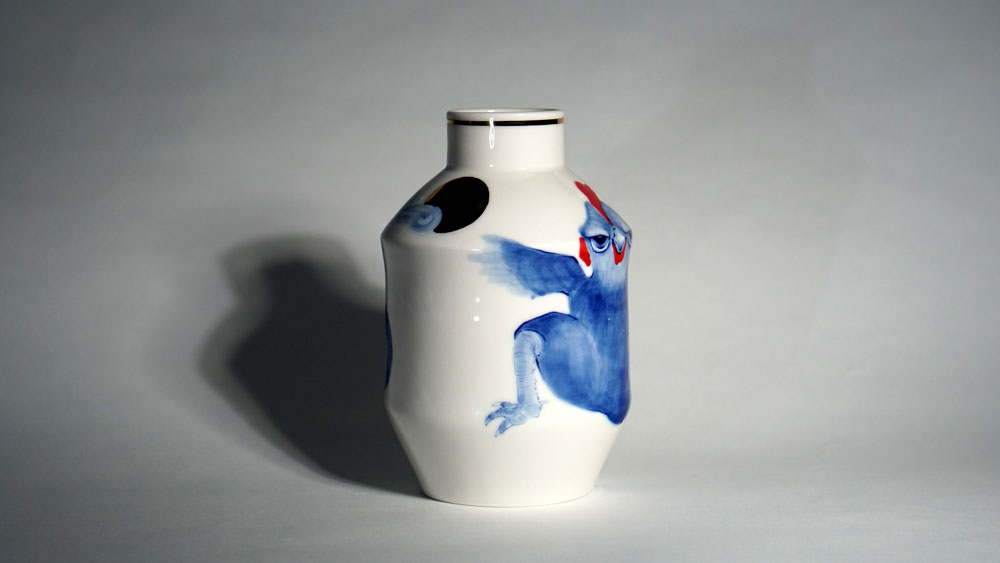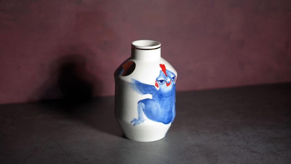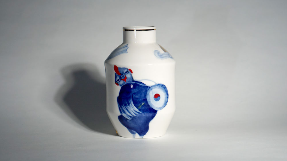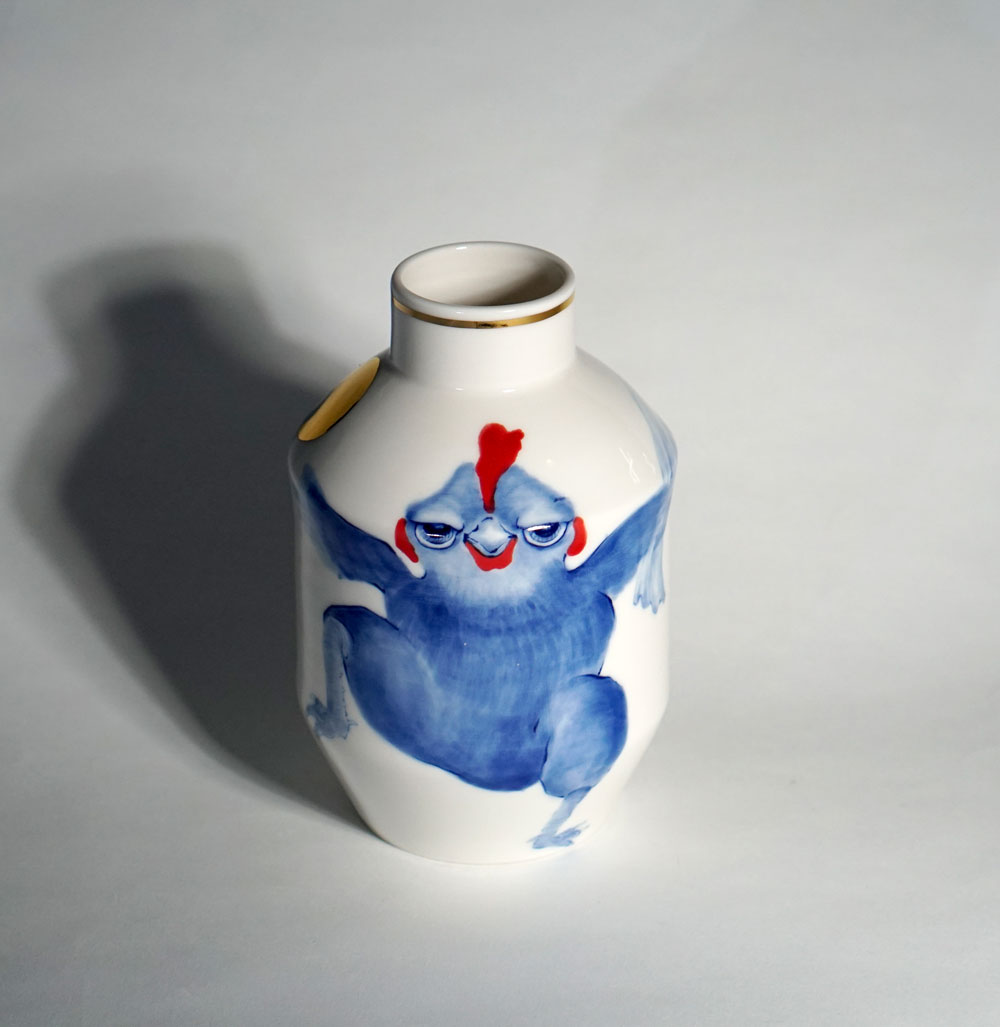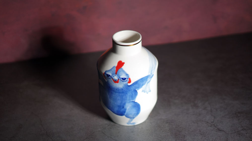 The Moon and Chickens vases are living objects where you can enjoy humorous expressions and playful movements of the chickens. The vases are hand painted and come in a variety of sizes and forms, allowing you to place one or more of them together to make your space even more unique.