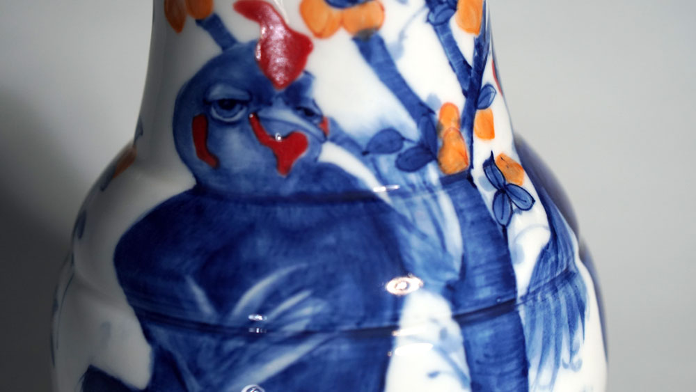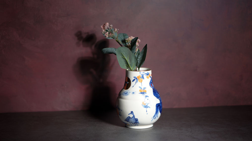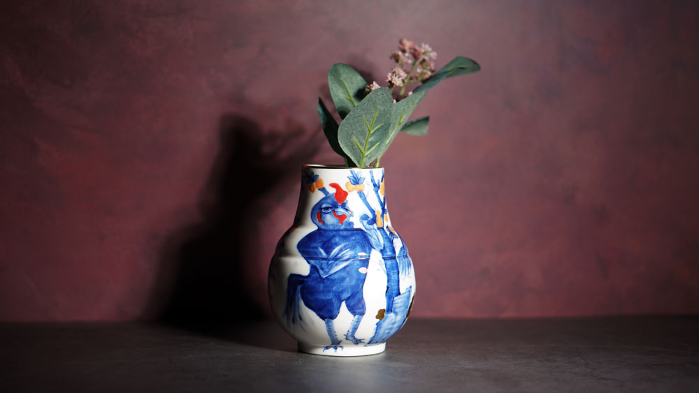 The Moon and Chickens vases are living objects where you can enjoy humorous expressions and playful movements of the chickens. The vases are hand painted and come in a variety of sizes and forms, allowing you to place one or more of them together to make your space even more unique.