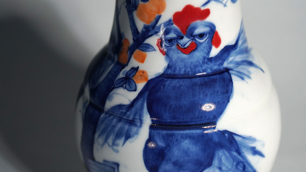 The Moon and Chickens vases are living objects where you can enjoy humorous expressions and playful movements of the chickens. The vases are hand painted and come in a variety of sizes and forms, allowing you to place one or more of them together to make your space even more unique.