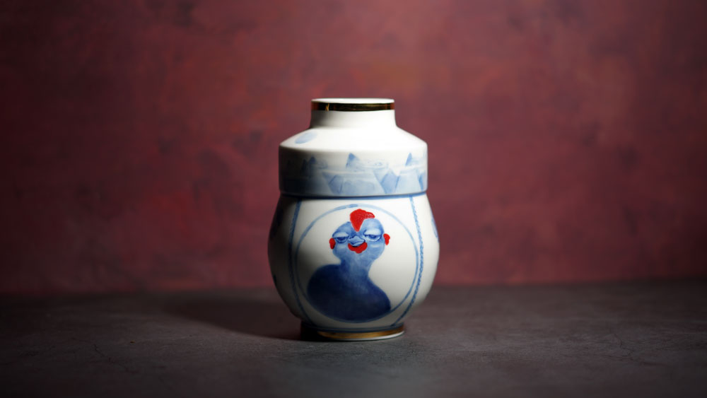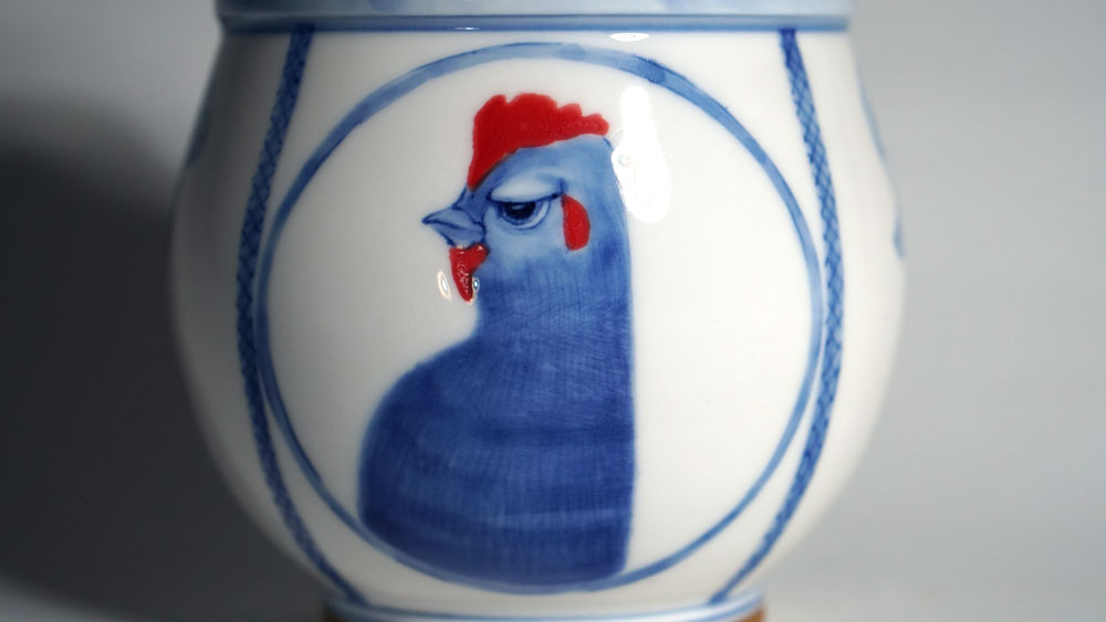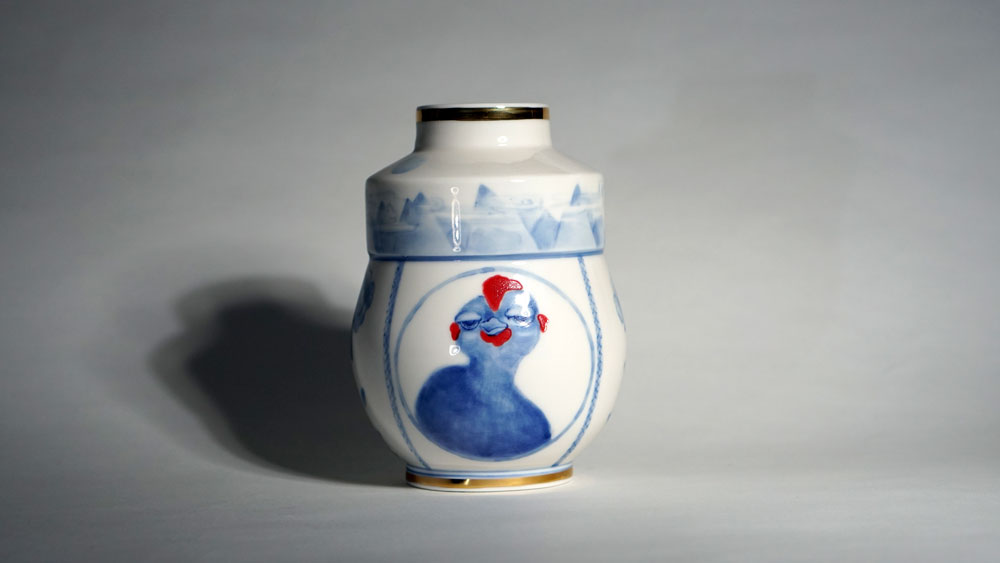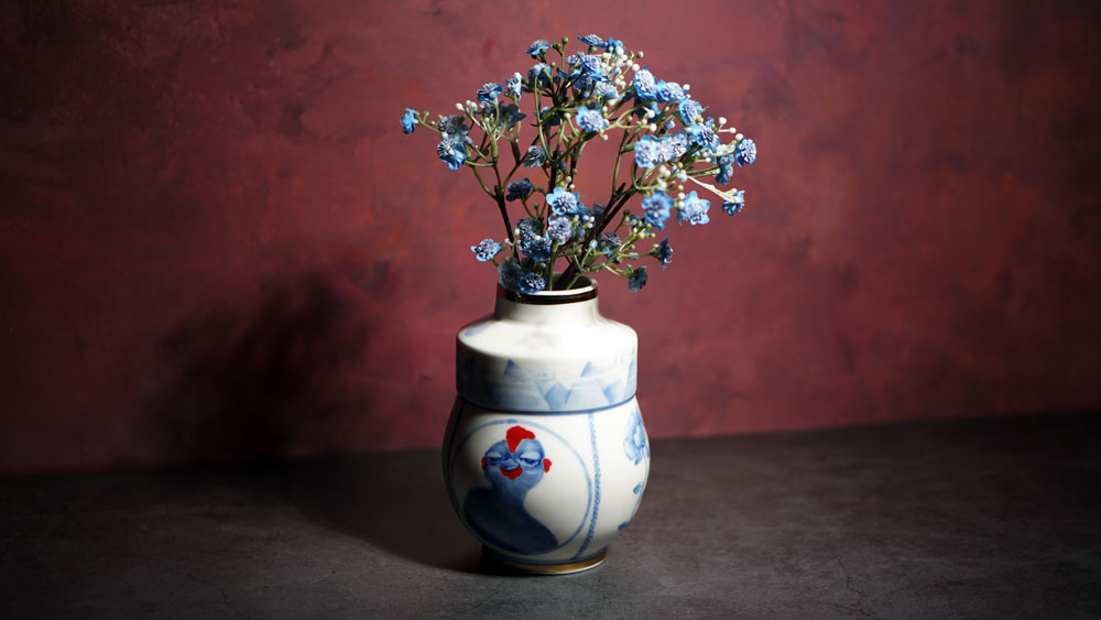 The Moon and Chickens vases are living objects where you can enjoy humorous expressions and playful movements of the chickens. The vases are hand painted and come in a variety of sizes and forms, allowing you to place one or more of them together to make your space even more unique.