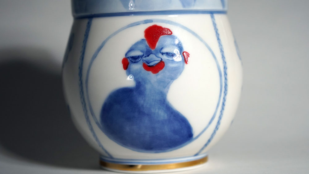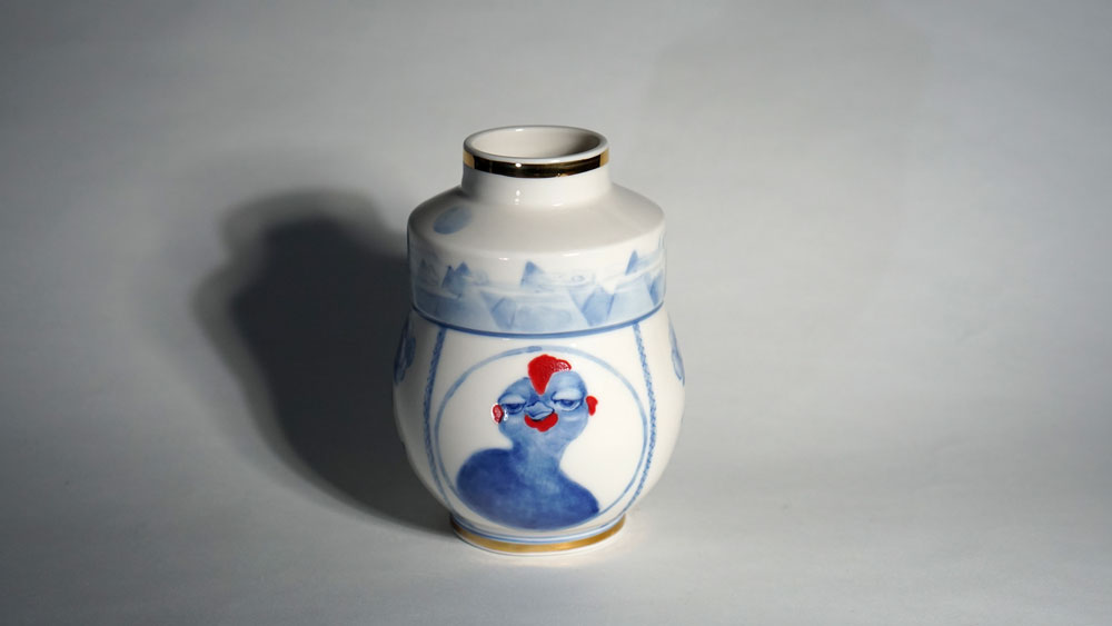 The Moon and Chickens vases are living objects where you can enjoy humorous expressions and playful movements of the chickens. The vases are hand painted and come in a variety of sizes and forms, allowing you to place one or more of them together to make your space even more unique.
