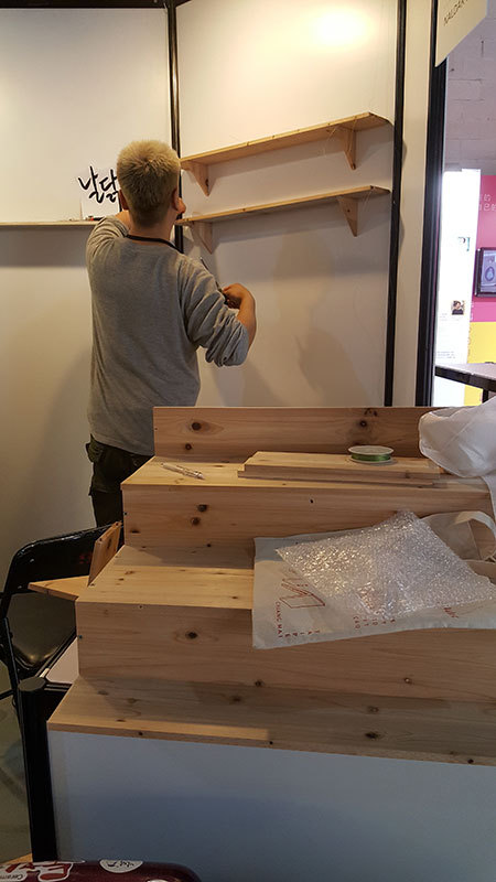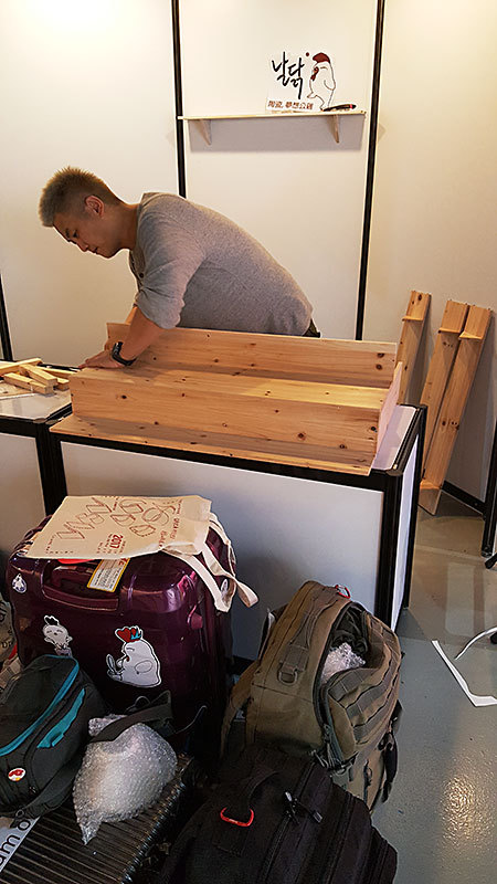 디스플레이를 위한 나무선반까지 챙길려니 짐이 좀 더 많은 느낌입니다.